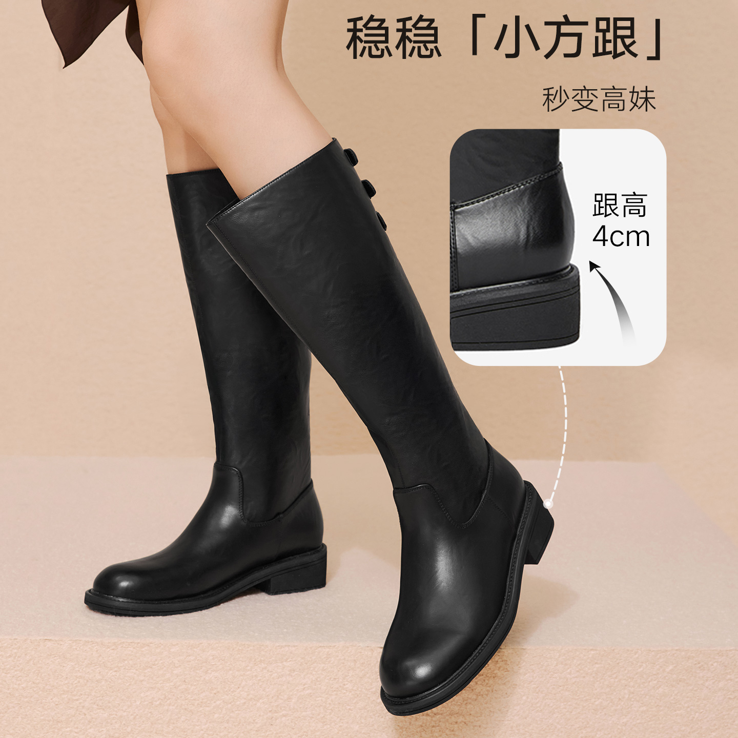 天美意弹力时装 衣橱直播间 靴加绒骑士靴长靴女短靴 所有女生