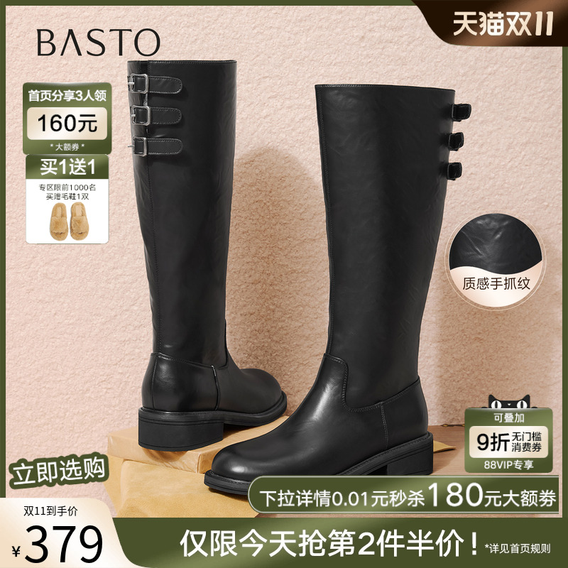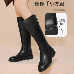 孙千沈月同款 加绒显瘦长筒靴子预E4F1 百丽双子星骑士高长靴女冬季