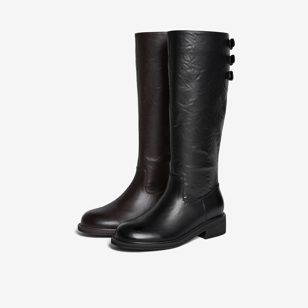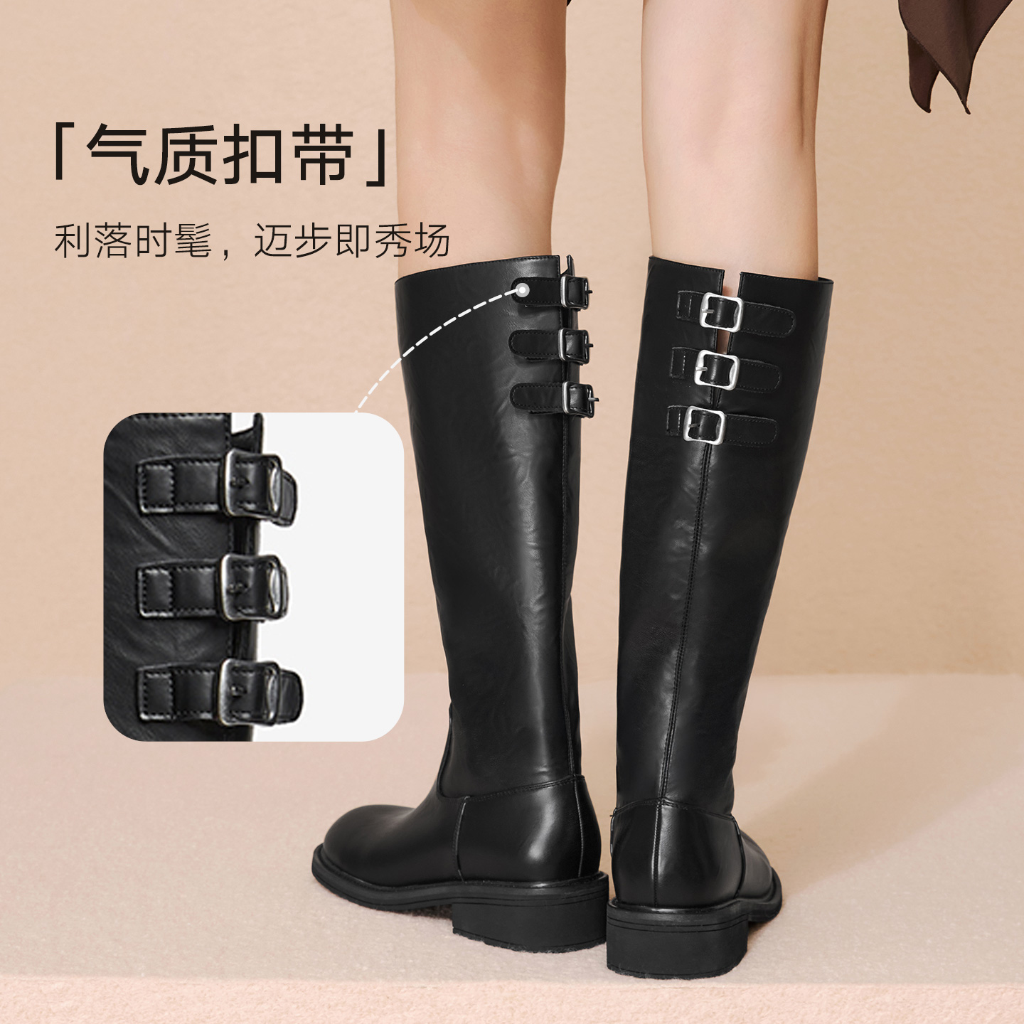 8cm内增高骑士靴女2025新款 管褶皱堆堆长筒靴子 秋冬厚底皮带扣裤