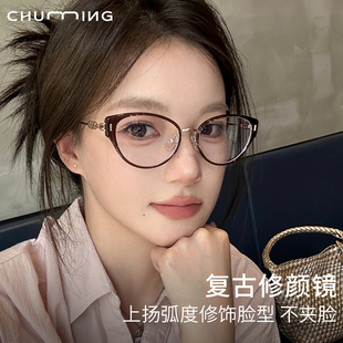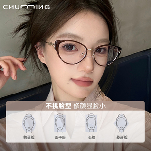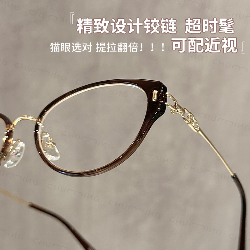 韩系茶色猫眼框眼镜近视女可配有度数适合方圆脸高级感素颜眼睛架