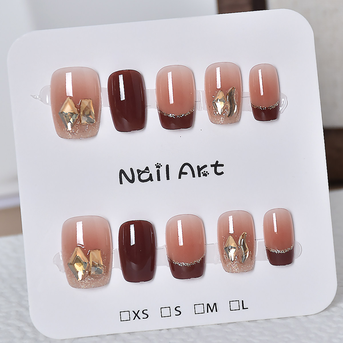 手工光疗指甲2025新款 穿戴甲短款 黄黑皮显白学生 红色法式 秋冬款