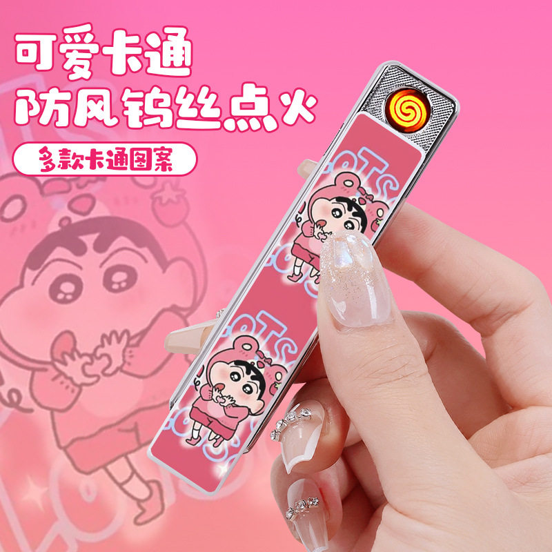 网红爆款 创意高颜值电子点火器烟 蜡笔小新充电打火机防风无声个性