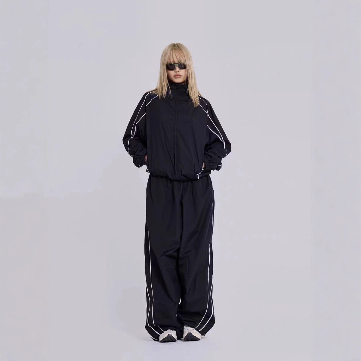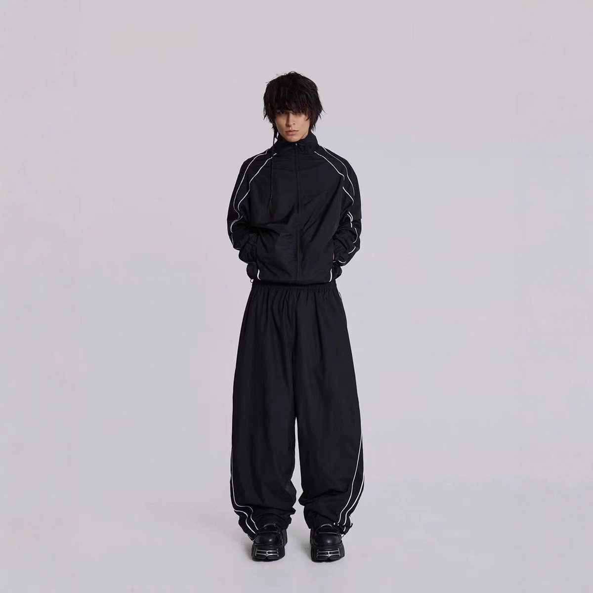 酷帅街潮风撞色线条宽松机能运动外套长裤 Jaded London