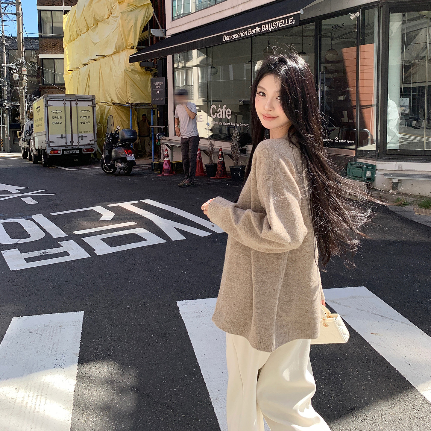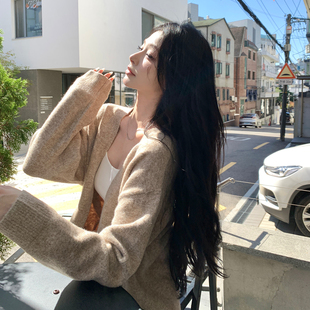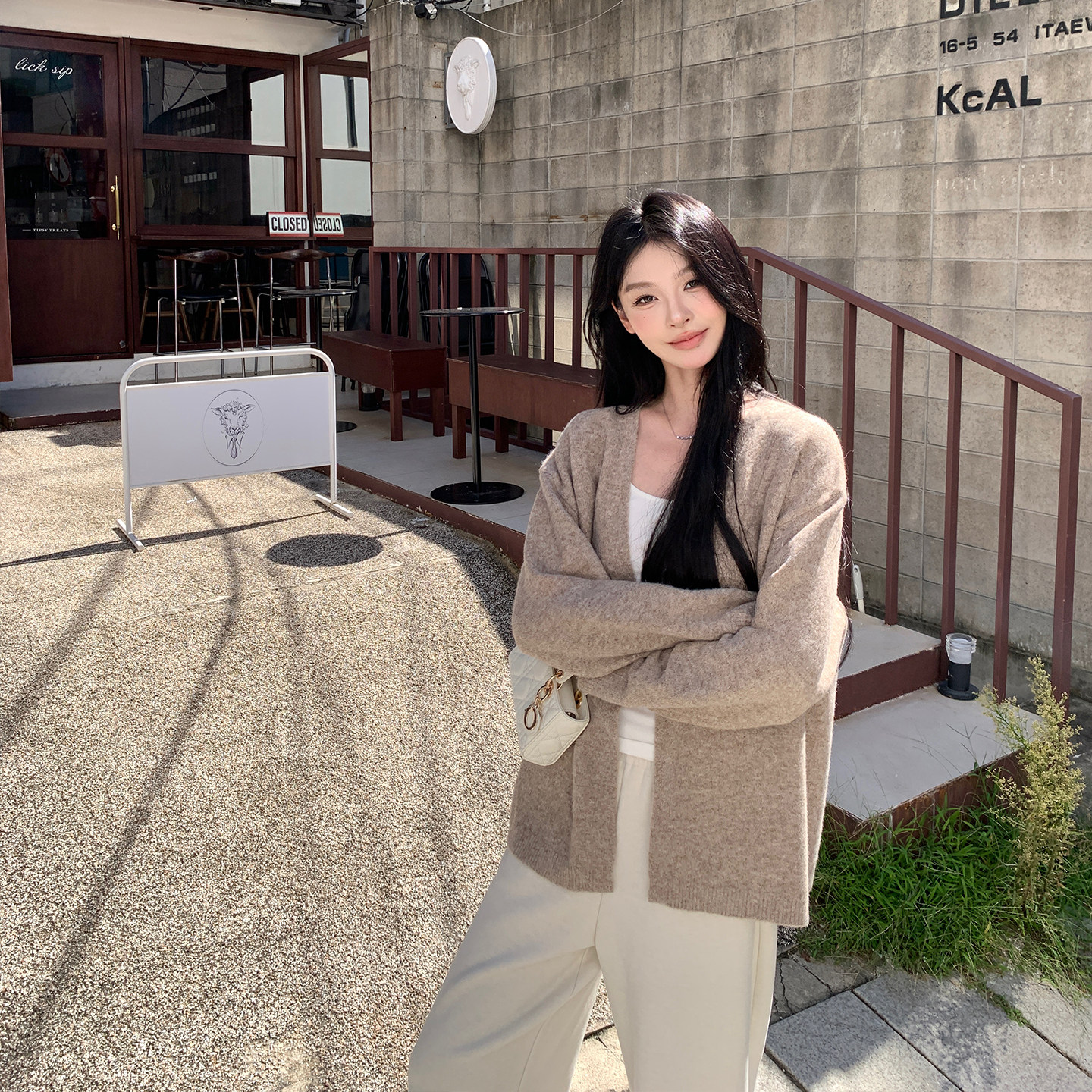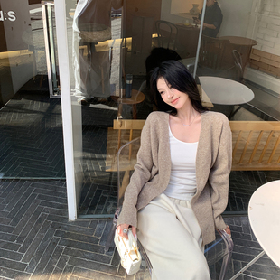stevens慵懒风V领针织开衫 中长款 羊毛衫 宽松薄款 外套 女秋季 alex