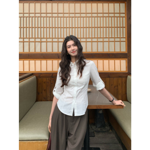 衬衣气质修身 pusumede 女长袖 盐系条纹翻领衬衫 叠穿上衣 智性漫游