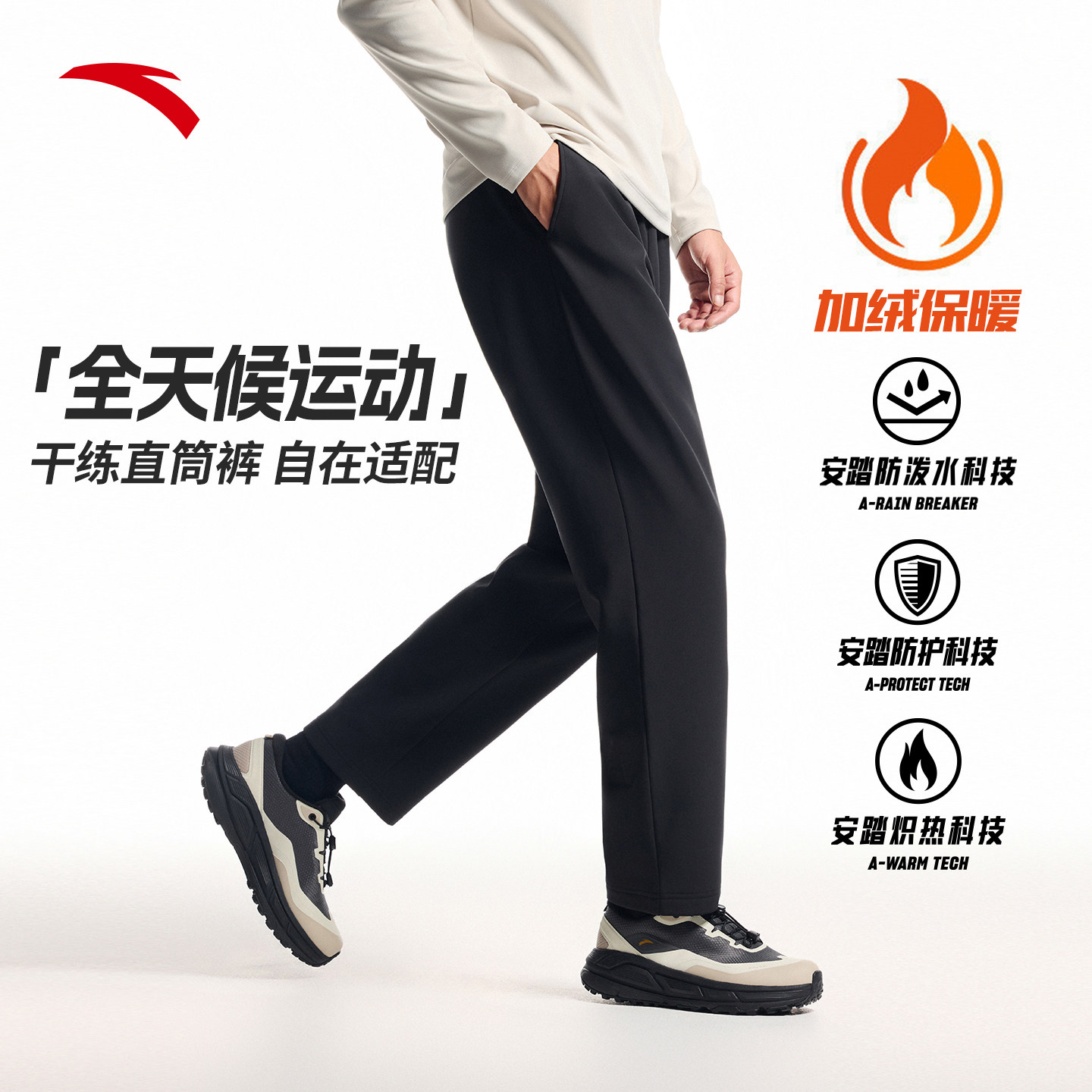 加厚梭织男士 通勤休闲男裤 2025冬季 加绒直筒裤 子 新款 安踏运动长裤