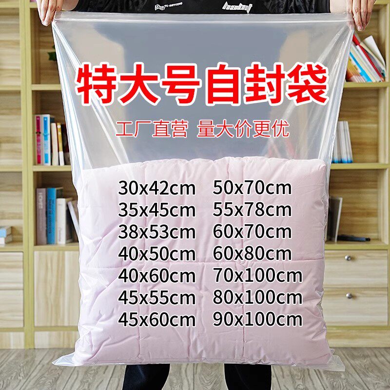 加厚自封袋PE封口袋透明塑料食品袋大小号样品零食分装 收纳夹链袋
