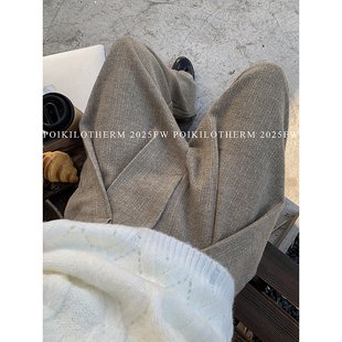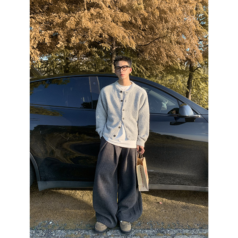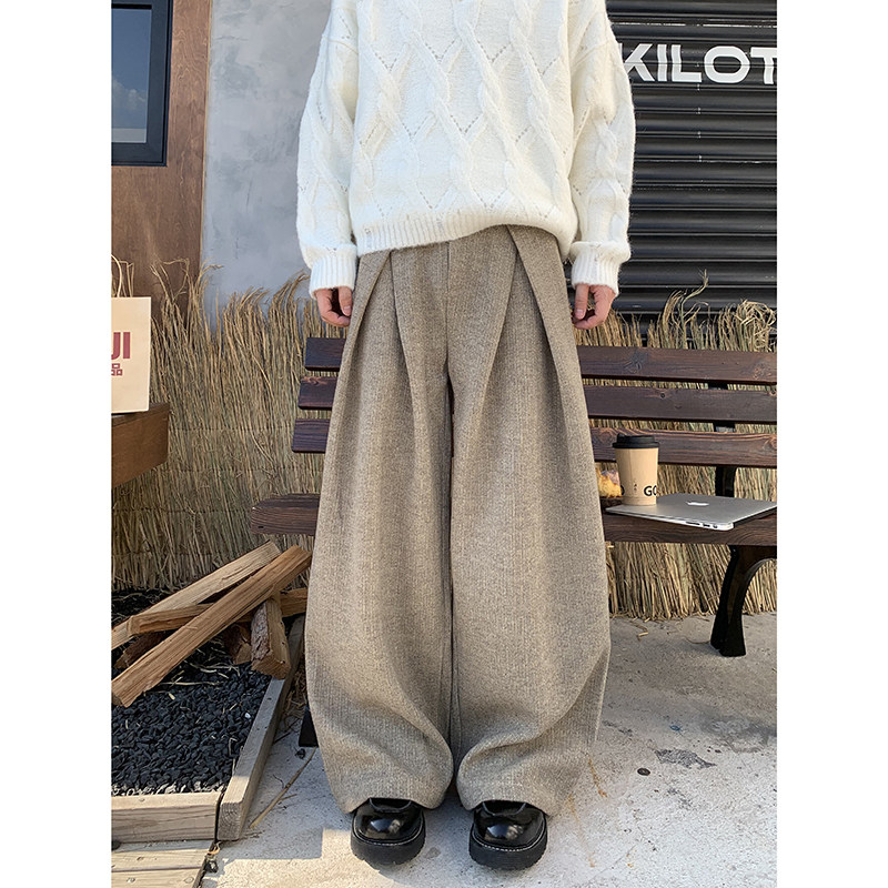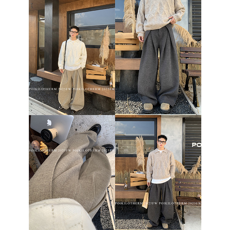 男宽松小众垂感休闲呢子长裤 春秋复古加厚阔腿毛呢西裤 鹿 怕生