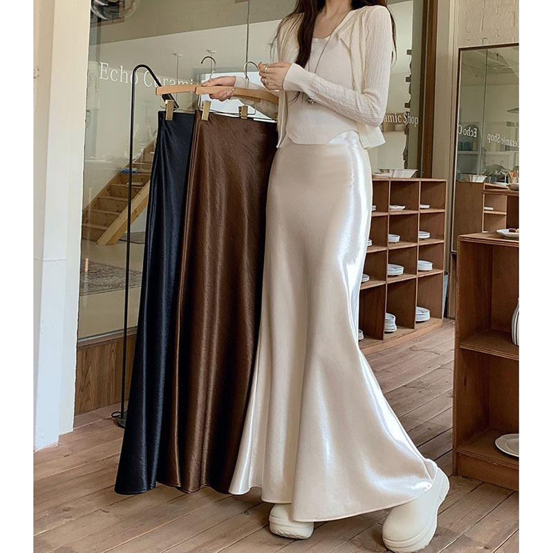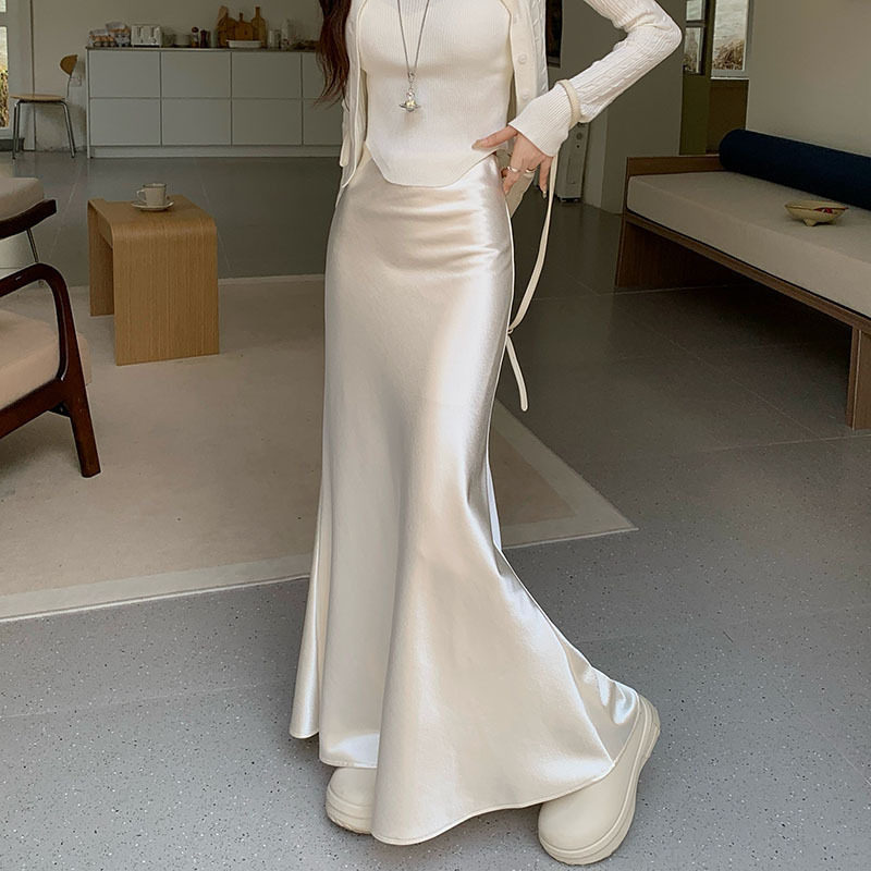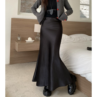 法式 高腰显瘦包臀裙半身裙长裙子 高级感气质醋酸绸缎鱼尾裙女秋季