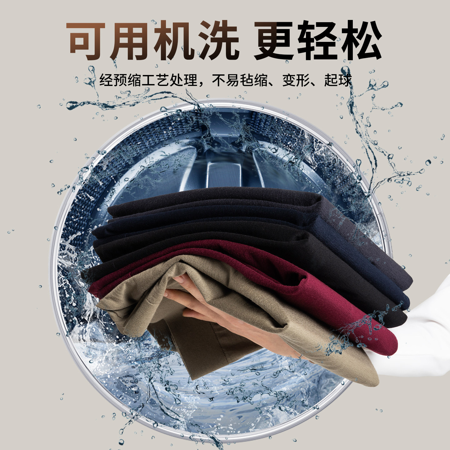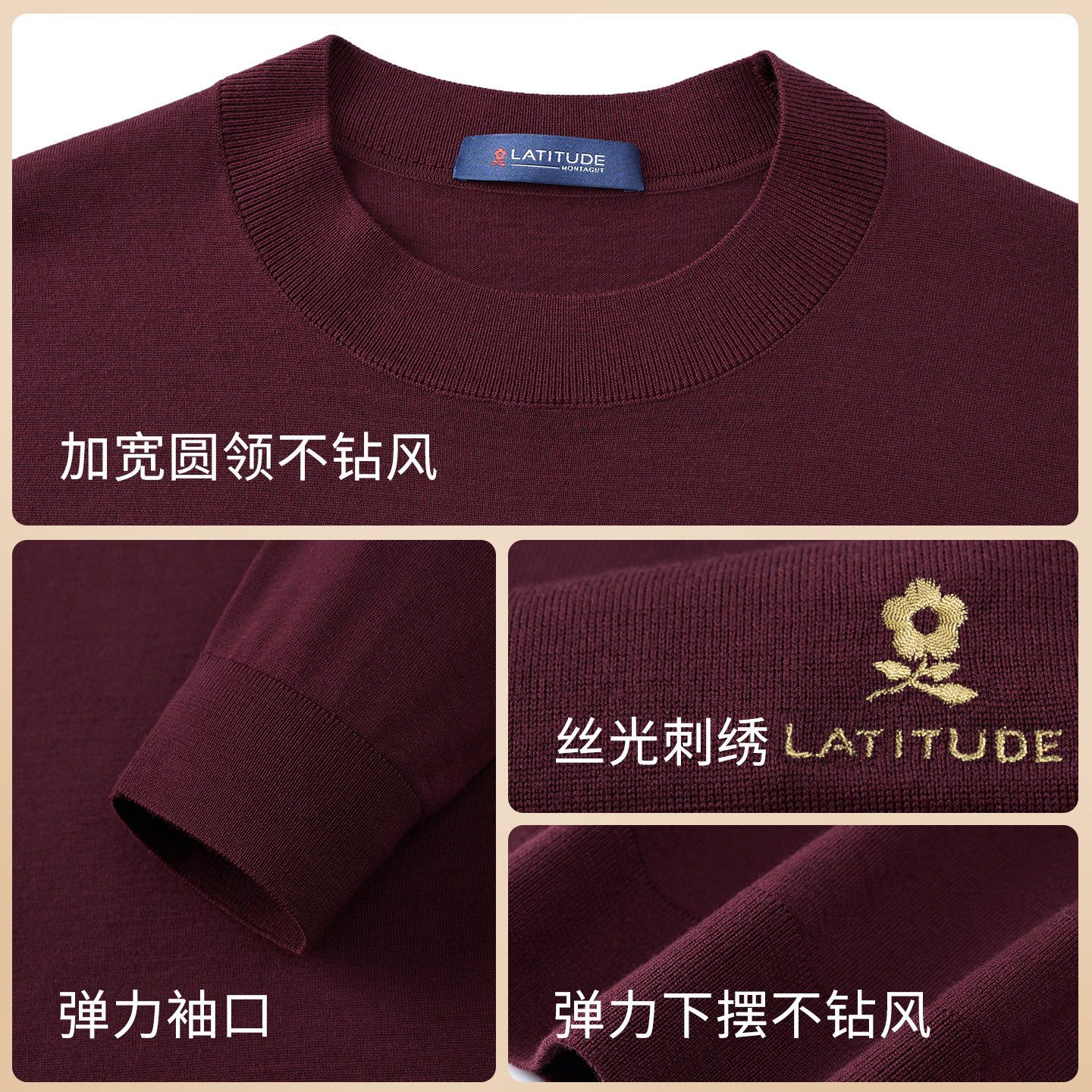 男圆领秋冬精纺可机洗毛衣打底T恤保暖J 梦特娇羊毛衫 48支羊毛T
