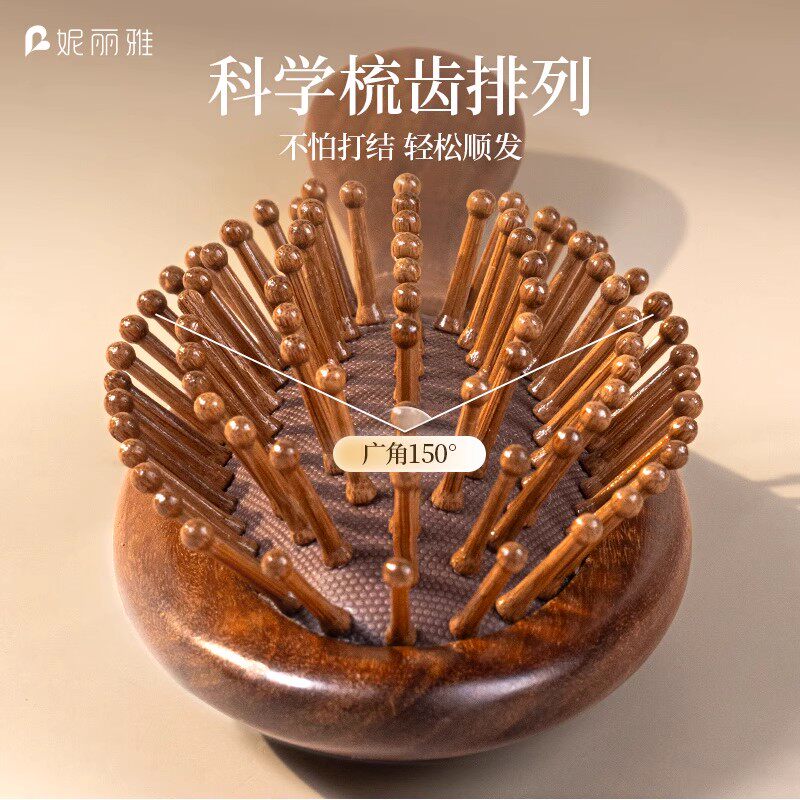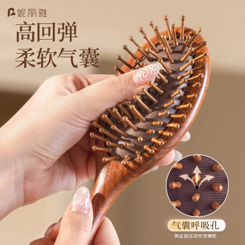 妮丽雅S2檀木气垫梳女士家用顺发头部头皮按摩梳毛囊疏通便携梳子