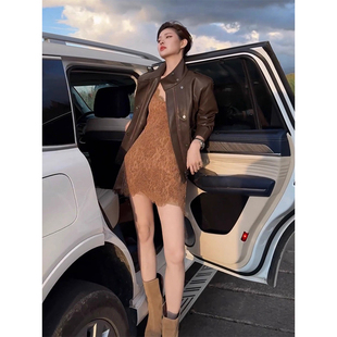 裙子 显瘦A字裙短款 吊带蕾丝连衣裙女早秋内搭2025新款 性感V领修身