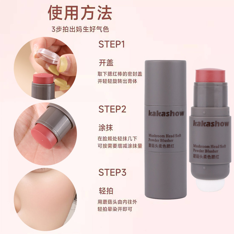 腮红棒蘑菇头腮红2025新款 多功能单色懒人腮红棒双头腮红膏 爆款