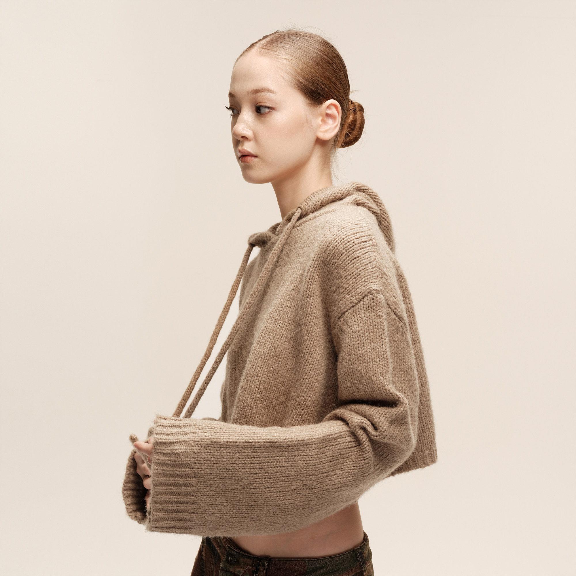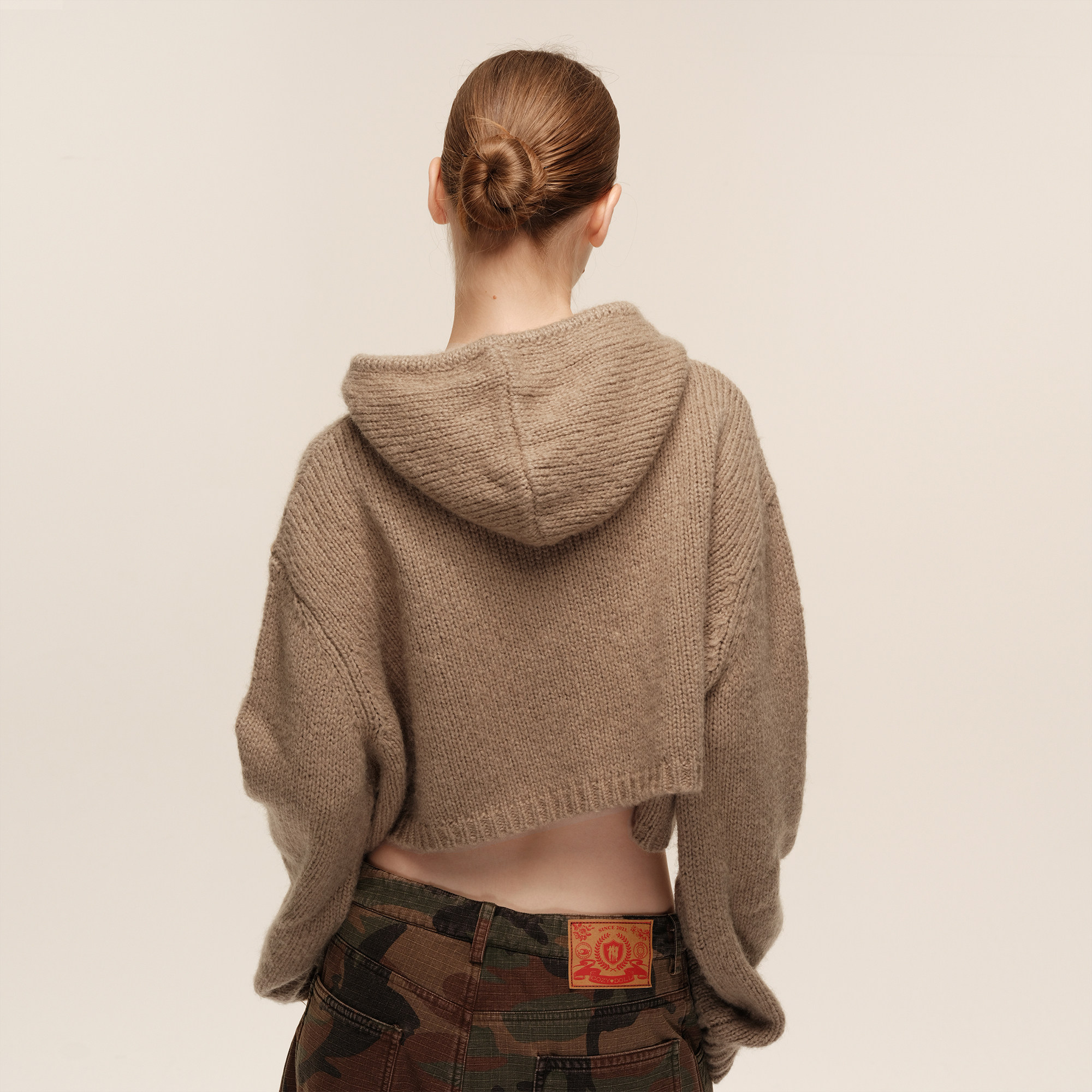 复古低饱和粗针短款 COZYDOLL拉夫风美式 连帽毛衣外套 GINGER