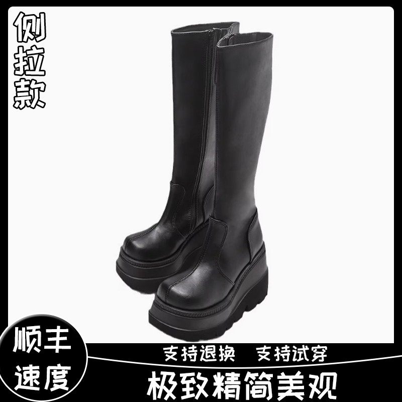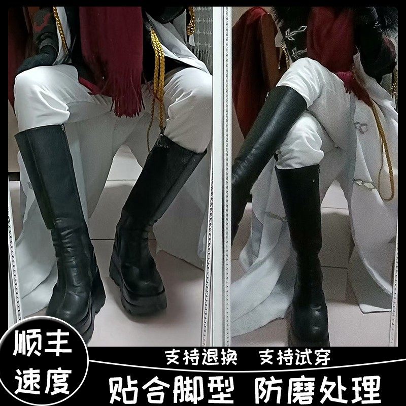 漫展增高鞋 男女马丁靴coser万用黑色皮靴子高筒靴 cosplay二次元