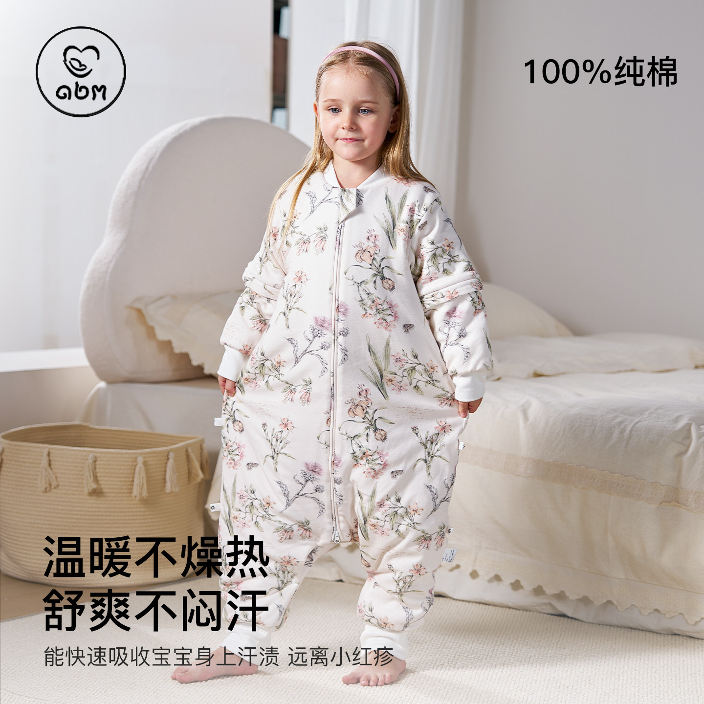 宝宝纯棉儿童恒温防踢被四季 婴儿睡袋分腿秋冬款 通用 肽柔 贝肽斯