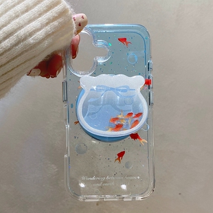 Y36 Y76S X200promini V40 S19 X300手机壳S18e小众y500 S30 X80 X90 渐变蓝金鱼新年款 y78 支架V25适用vivo