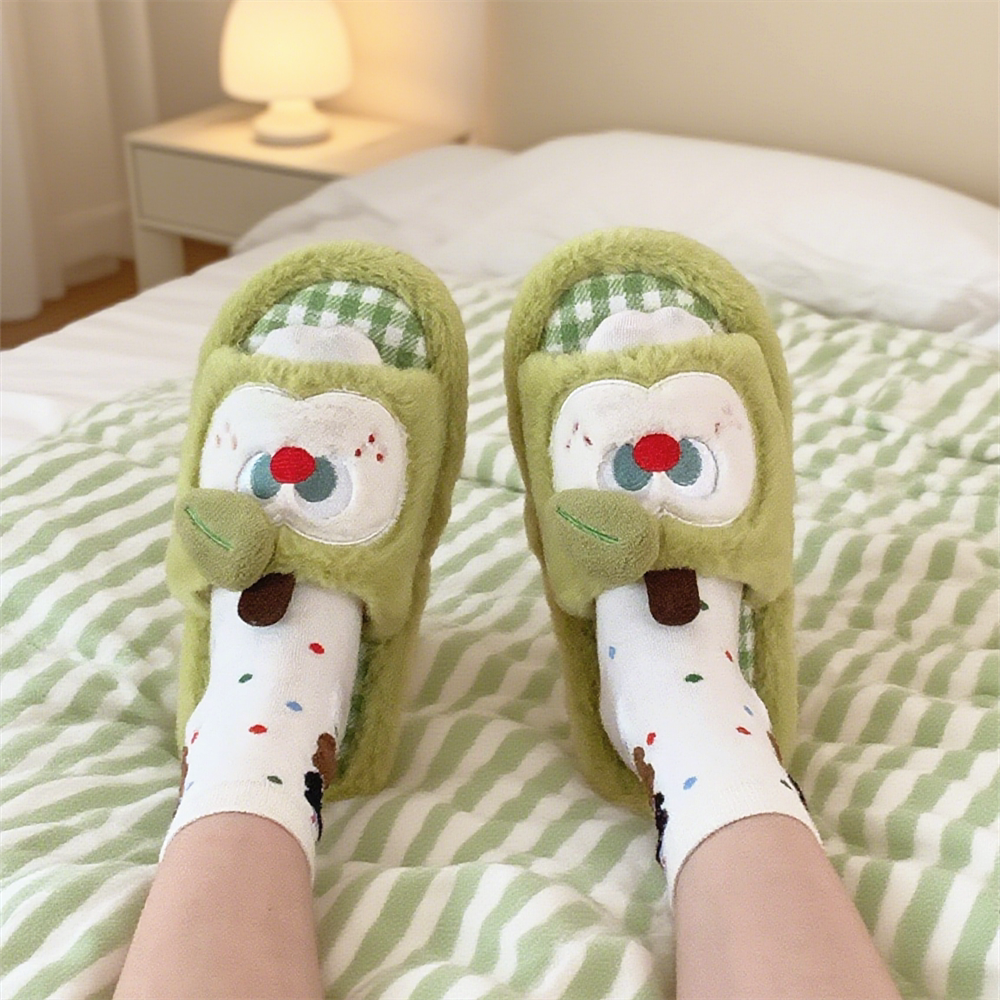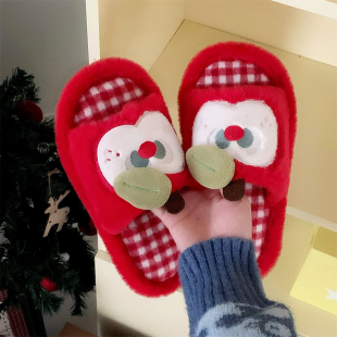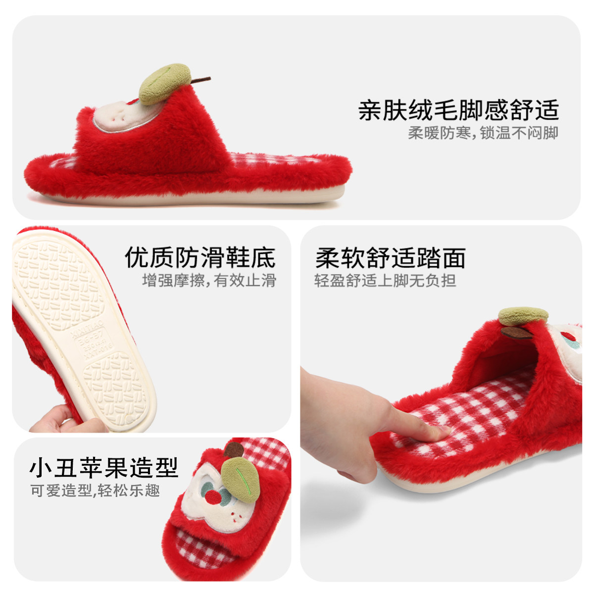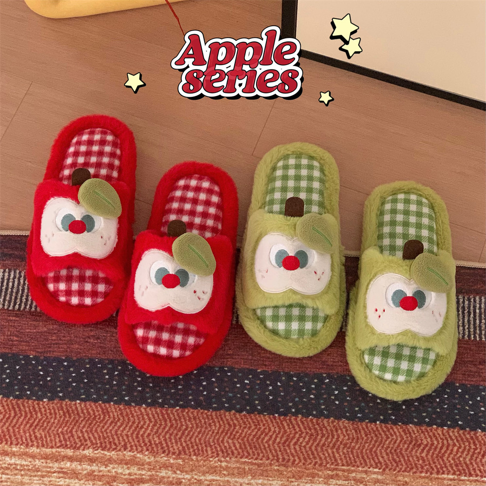细细条 秋冬网红可爱舒适防滑室内家用苹果毛毛拖女ins 学生棉拖鞋