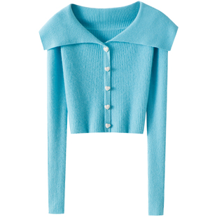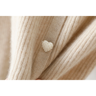 弹力针织外套秋冬 女假开衫 启超官方 大翻领珍珠扣100%纯羊绒开衫