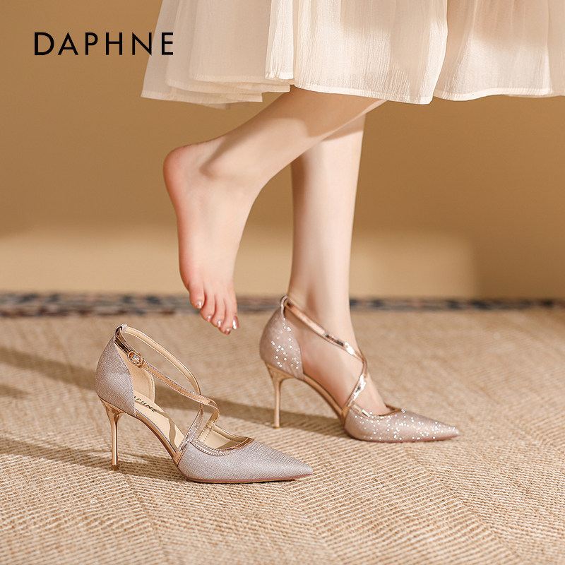 气质交叉绑带单鞋 Daphne 尖头细跟时尚 女2025年新款 达芙妮高跟鞋