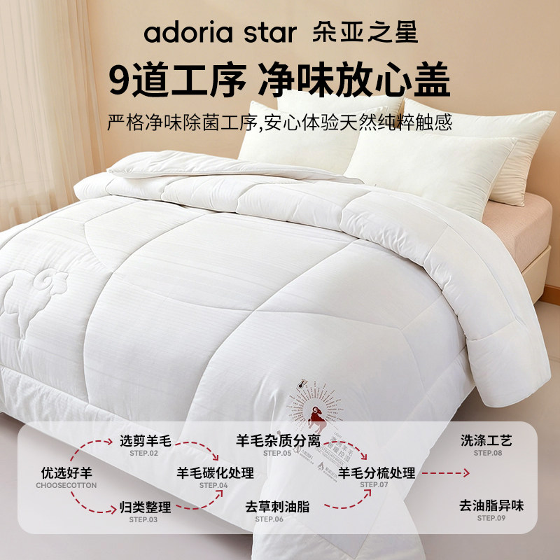 朵亚之星澳洲进口100纯羊毛被抗菌冬被宿舍春秋被芯加厚保暖床品