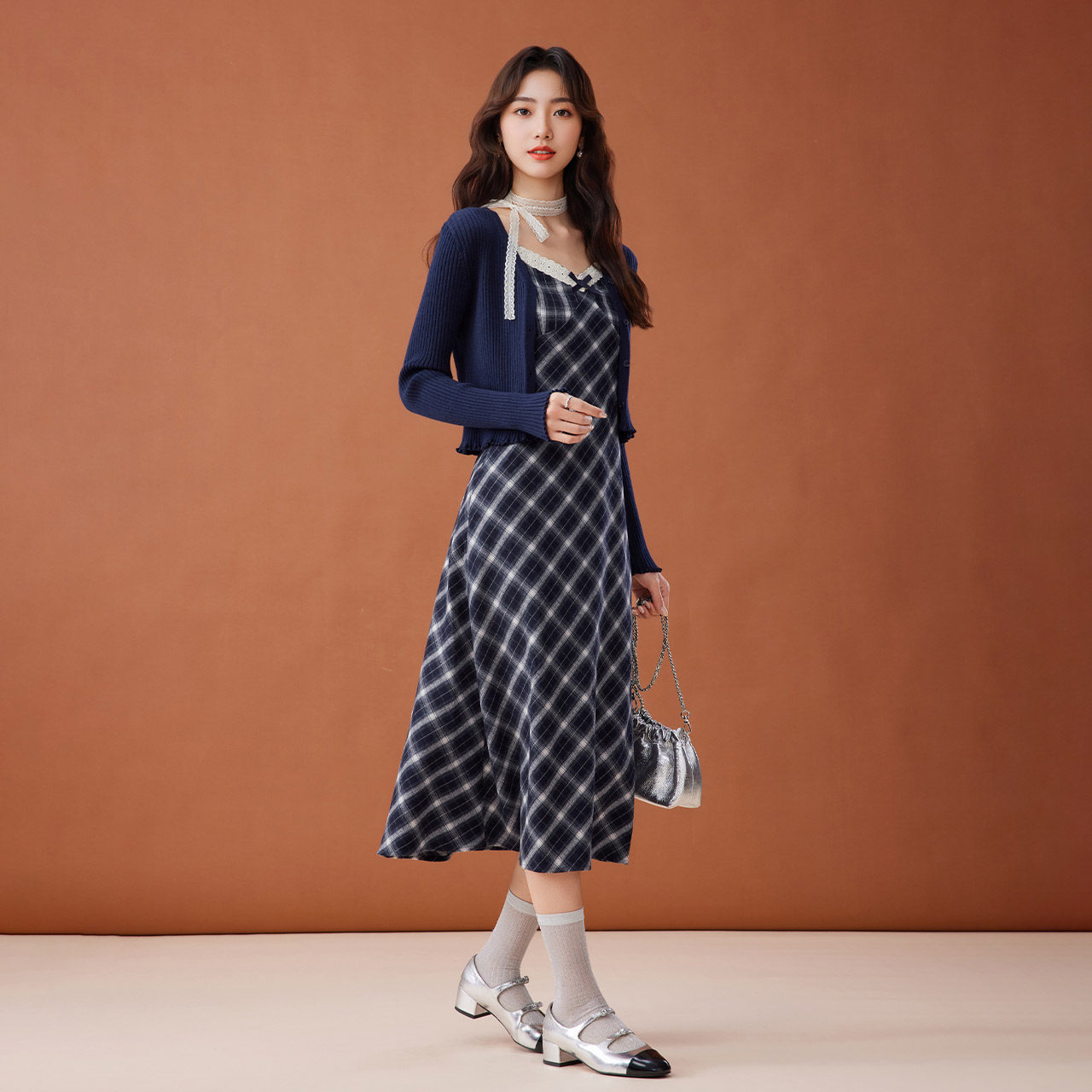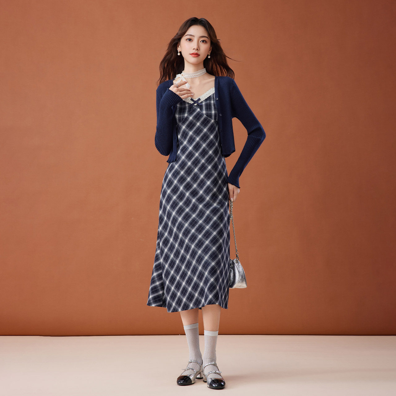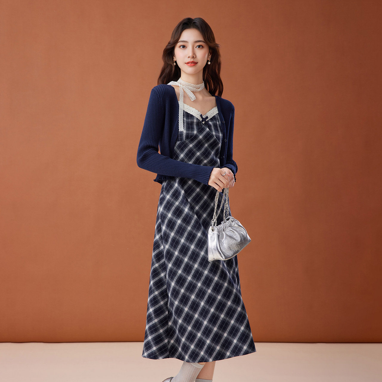 法式 新款 温柔小女人气质显瘦毛织里外套裙 爱依服裙子2025秋季 IEF