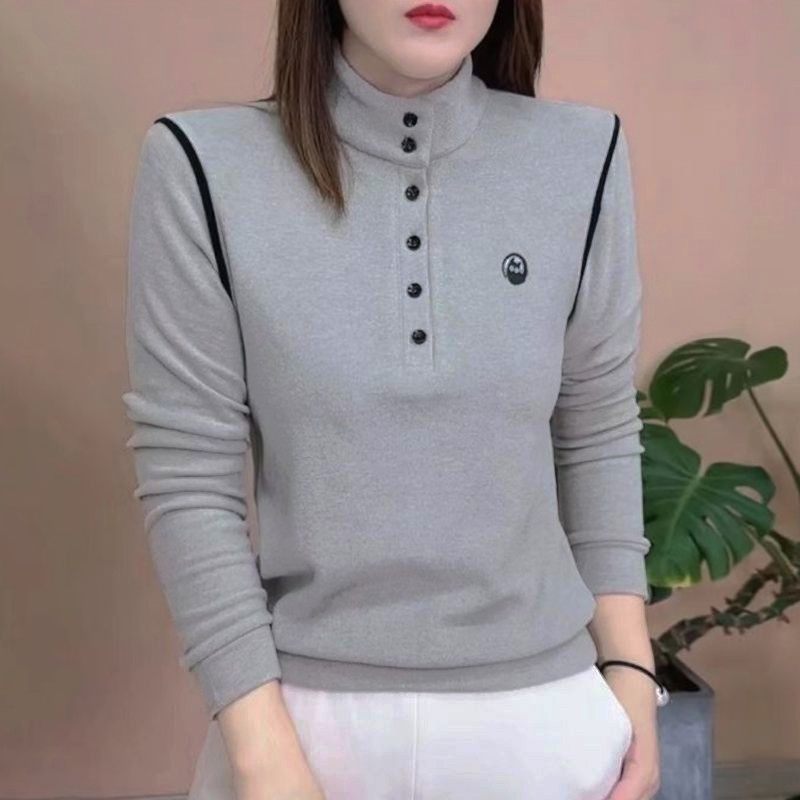 洋气打底 立领纯色百搭撞色秋冬装 加厚上衣时尚 外套刺绣德绒卫衣衫