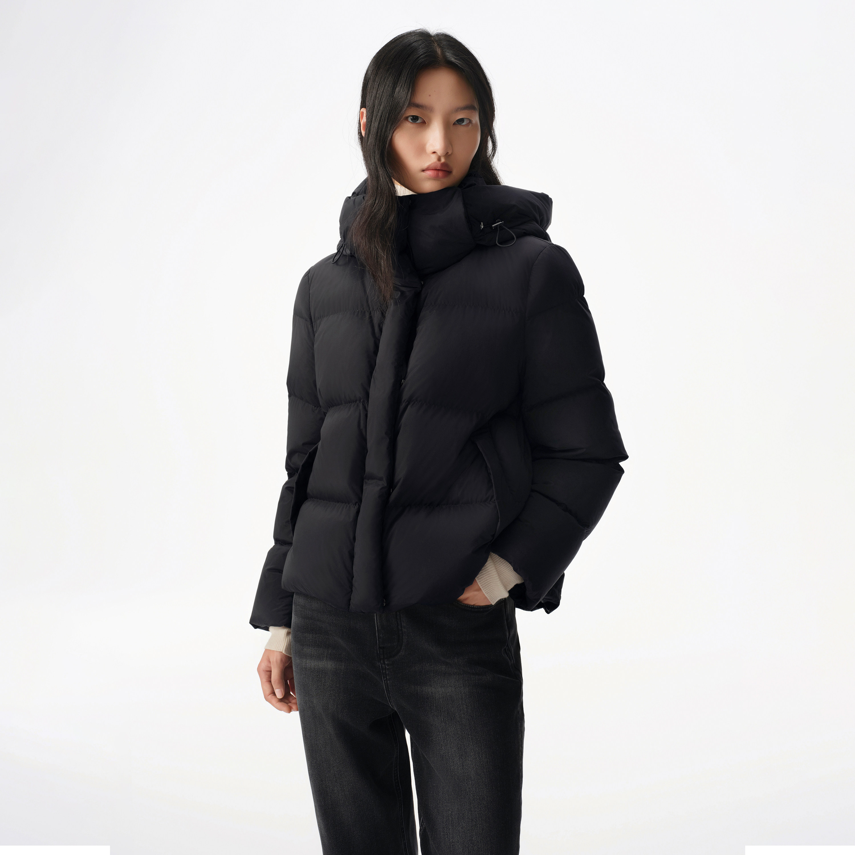 连帽时尚 小个子短款 保暖外套 秋冬季 90白鸭绒轻薄排骨羽绒服女短款
