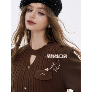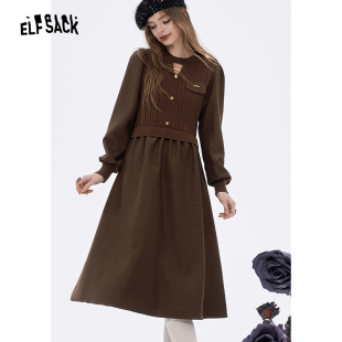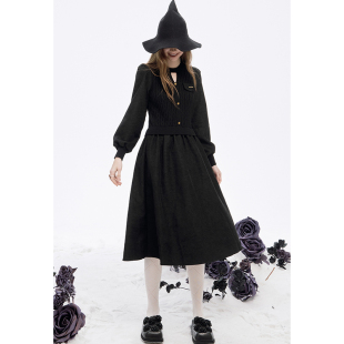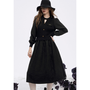 妖精 高级感气质小黑裙 口袋针织拼接假两件连衣裙女2026春秋新款