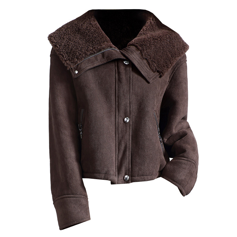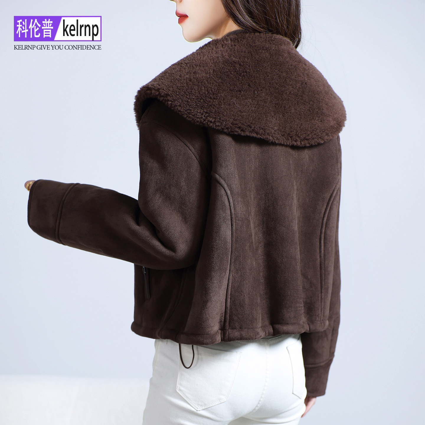 羊剪绒大衣女2026冬新短款 翻领原创海宁羔羊毛毛颗粒皮草外套 时尚