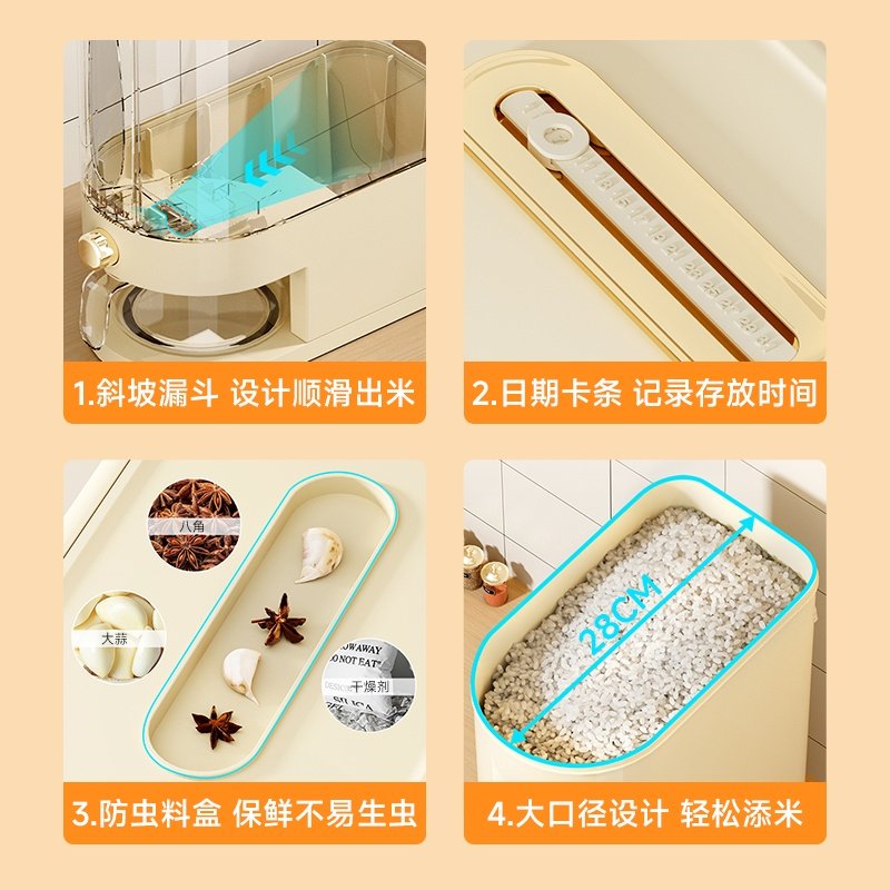 米桶旋转五谷杂粮装 大米收纳盒家用防虫防潮密封放储米箱2025新款