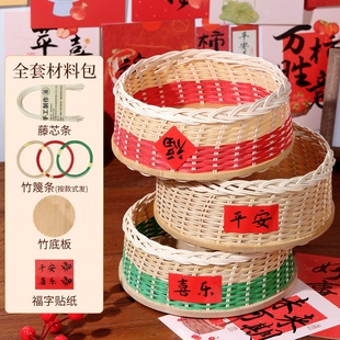 中式 干果点心托盘收纳竹雕竹编制品 手工编织果盘藤编水果盘篮日式