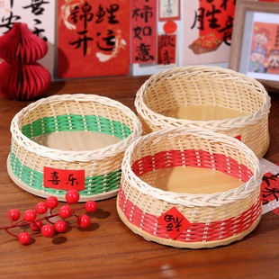 中式 手工编织果盘藤编圆形水果盘篮防水干果托盘收纳竹雕竹编制品