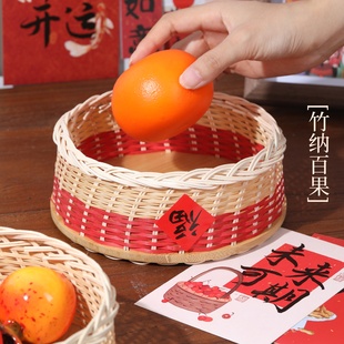 竹雪明 果盘大漆茶具收纳盒家用零食收纳筐竹雕竹编制品簸箕 中式