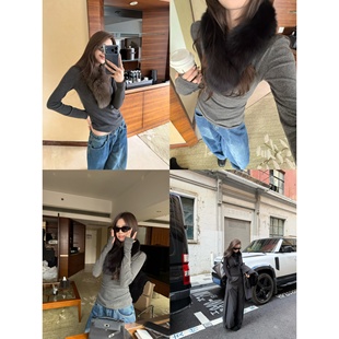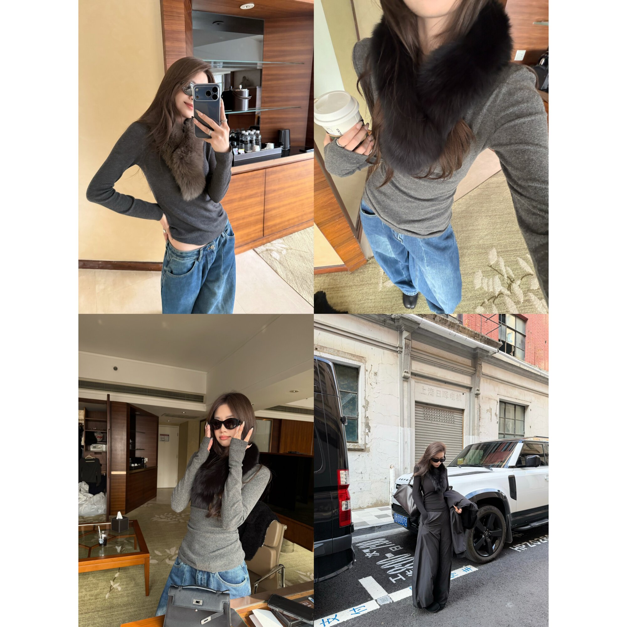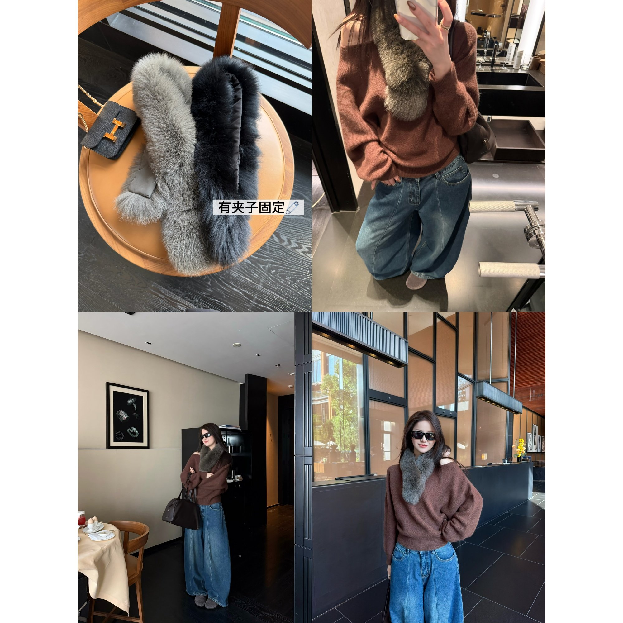 superniniyy 夹子固定 真毛狐裘&蓬松狐狸毛护颈围巾皮草围脖领子