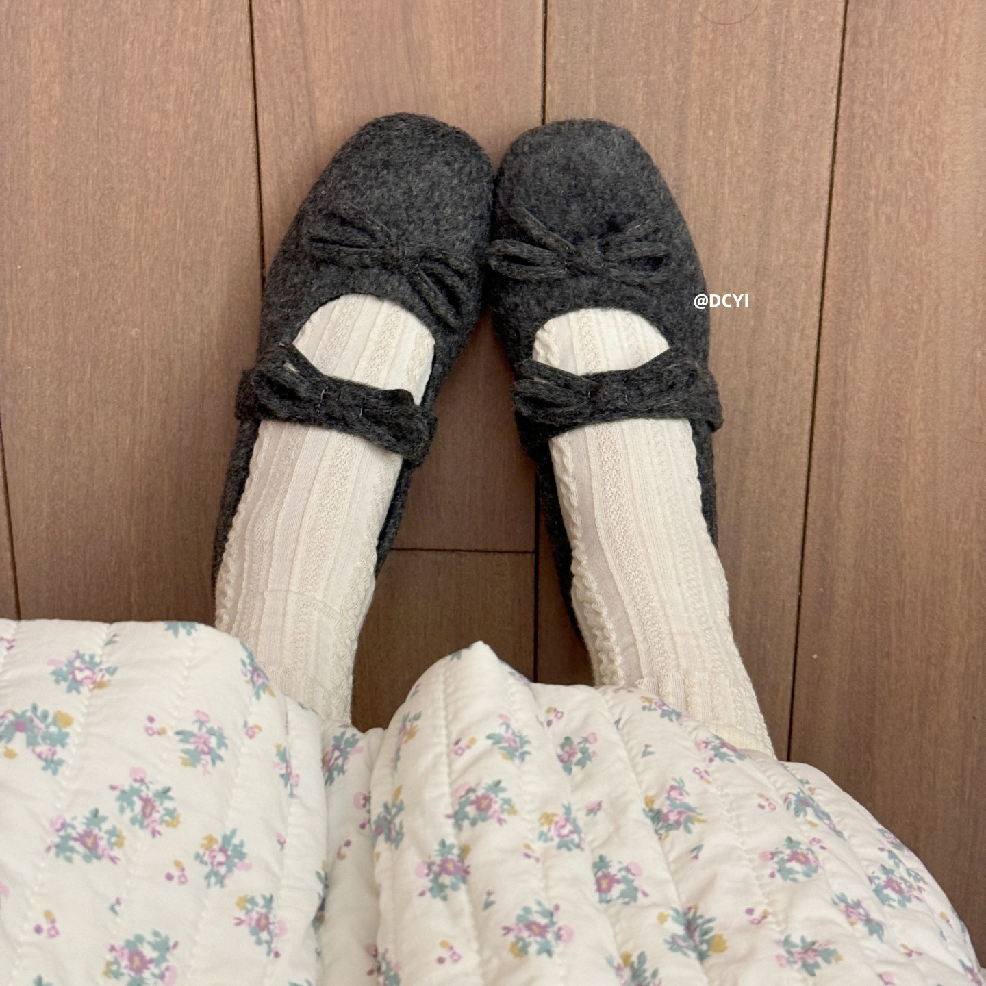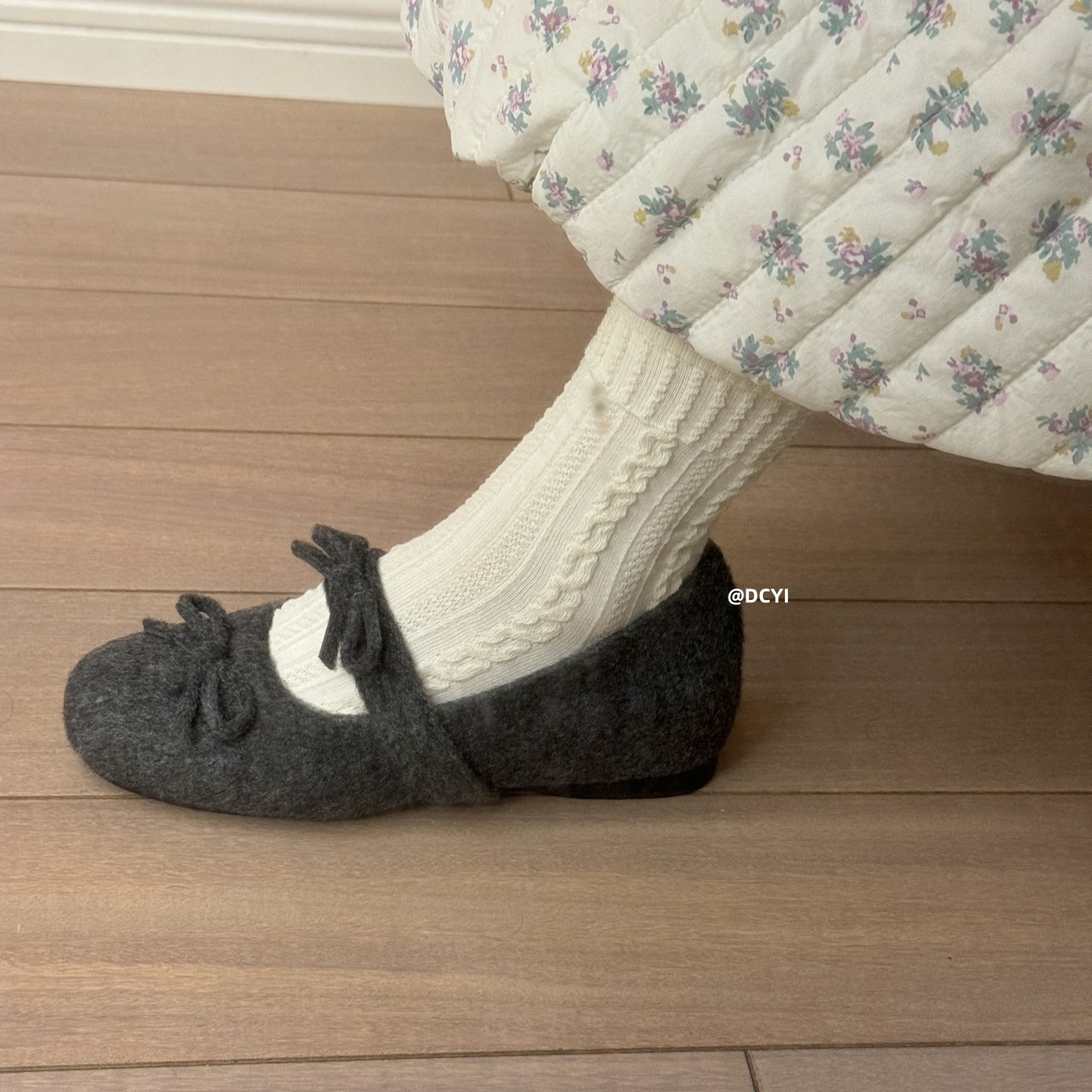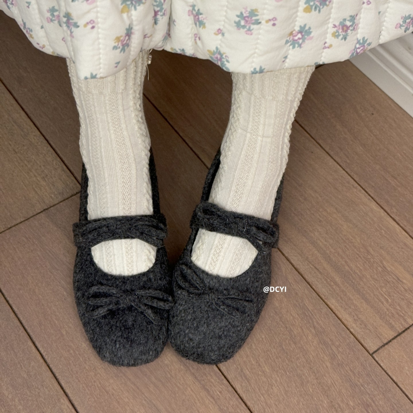 毛毛鞋 浅口平底温柔复古舒适奶奶鞋 秋冬新款 毛呢蝴蝶结加绒单鞋