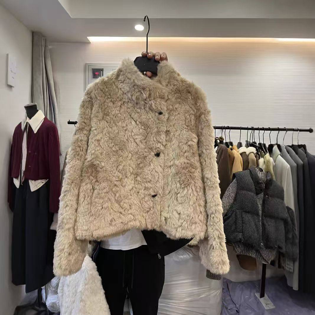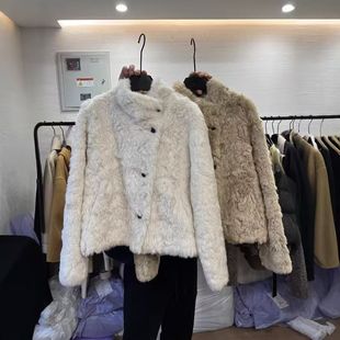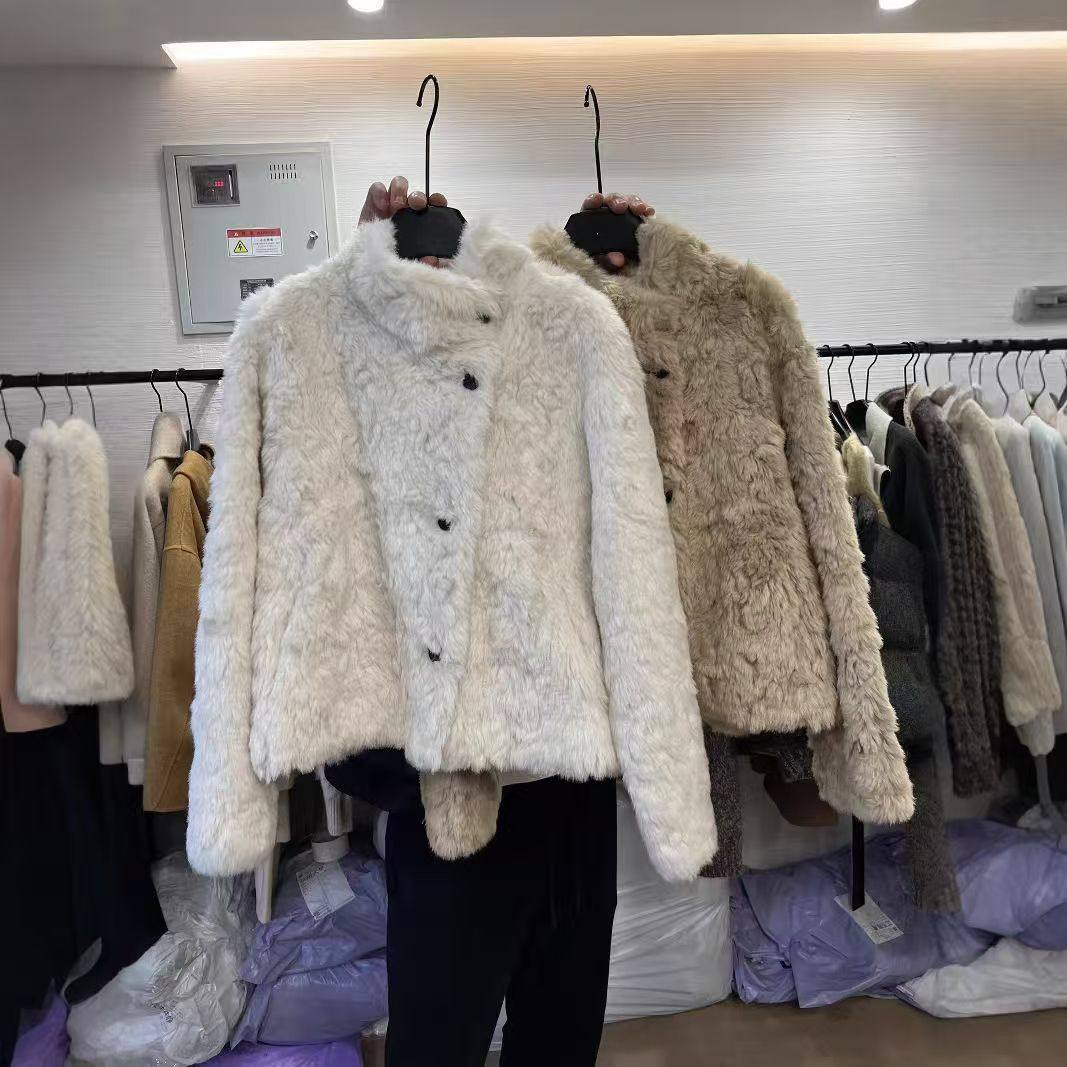 韩系立领羊羔毛皮草外套女短款 皮毛一体保暖加厚百搭显瘦大衣