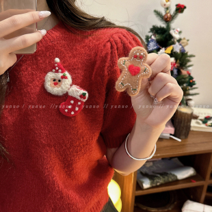可爱圣诞节胸针女氛围感礼物毛毡卡通雪人别针毛衣围巾包包装 饰品