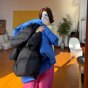 老章和小胖PONGKIKI超轻云朵排骨服大码 高领连帽保暖羽绒服外套女