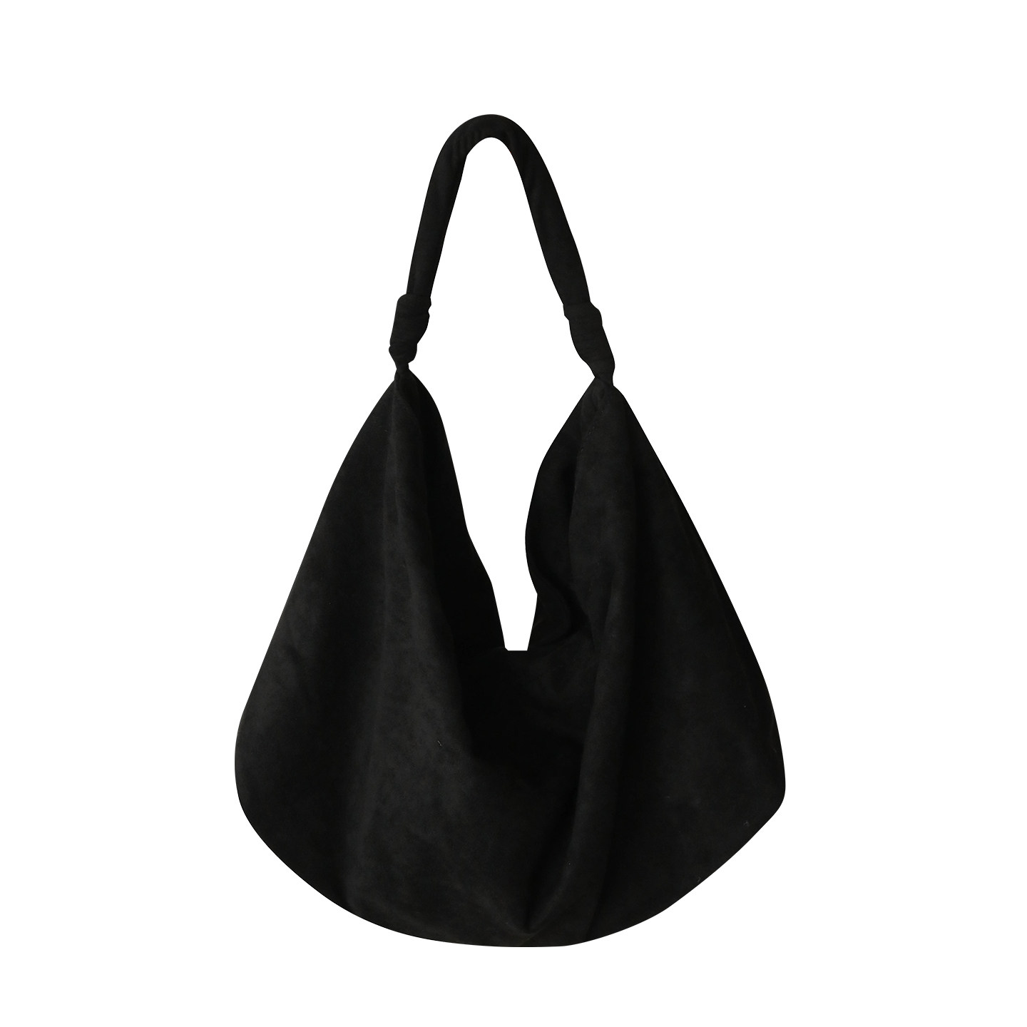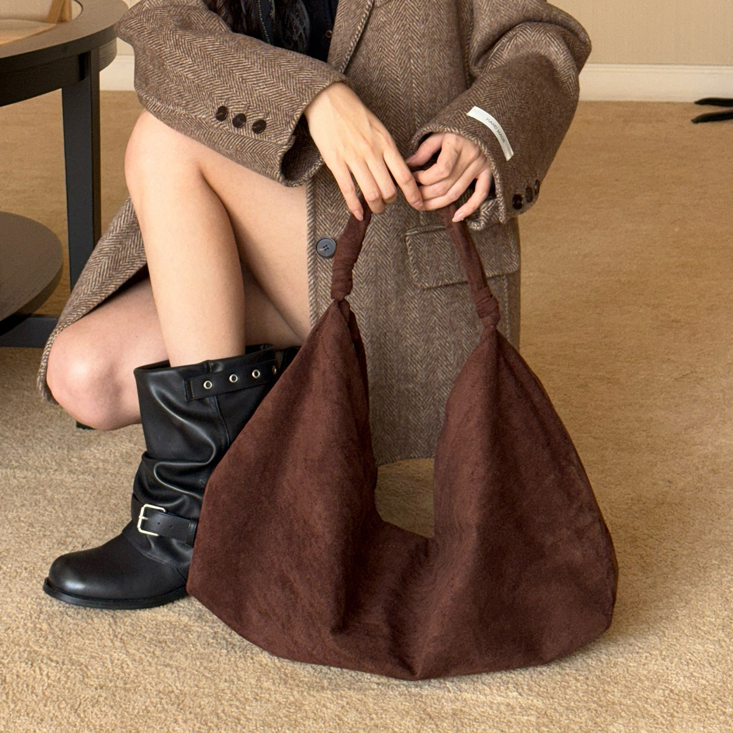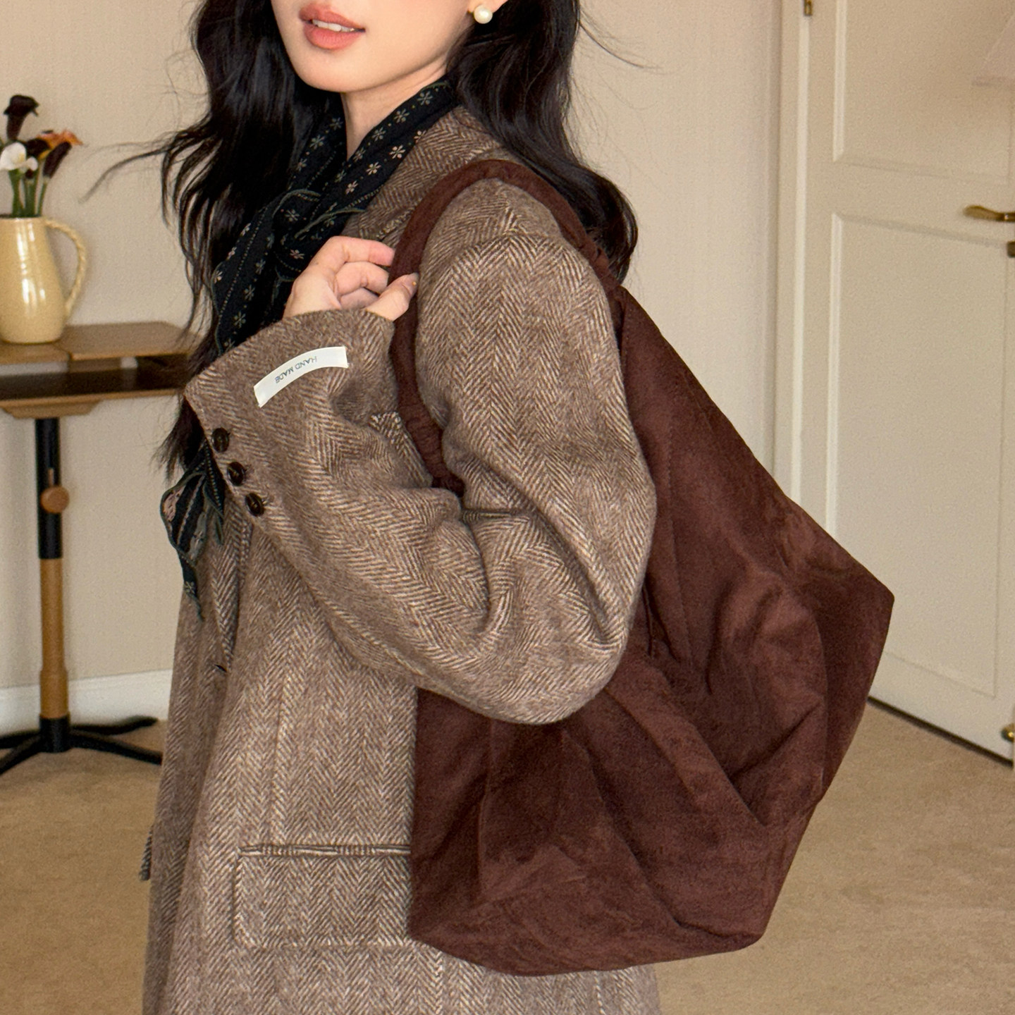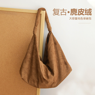 小众复古麂皮绒单肩包大容量纯色托特包秋冬咖啡色腋下包通勤百搭