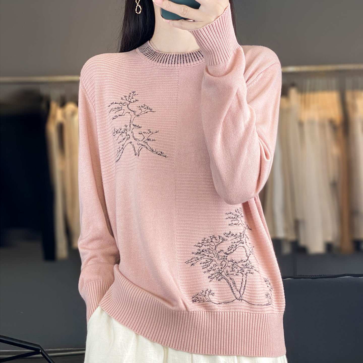刺绣针织打底衫 女装 女2025新款 洋气大码 上衣秋冬毛衣 秋季 早秋时尚