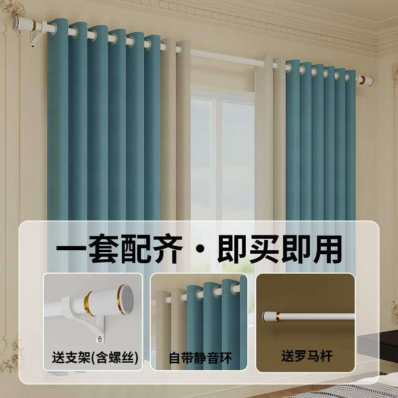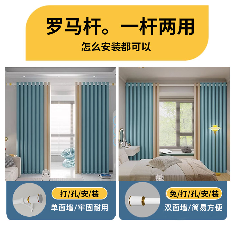 窗帘窗帘杆一整套罗马杆全套带杆免打孔安装 卧室遮光轻奢 2025新款