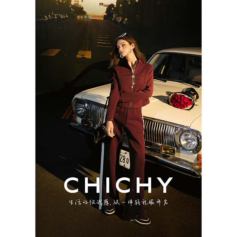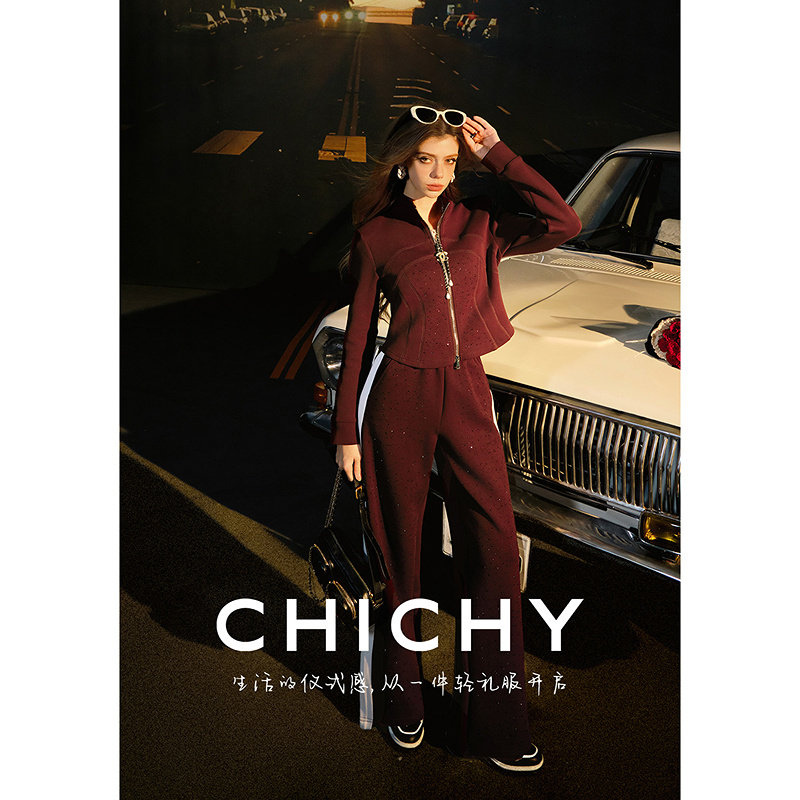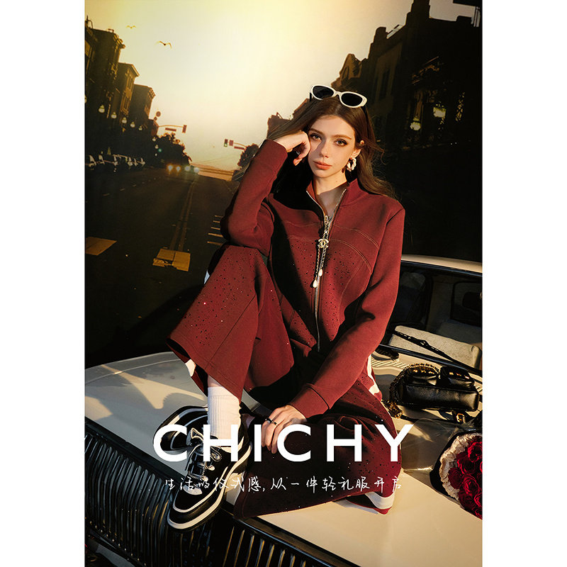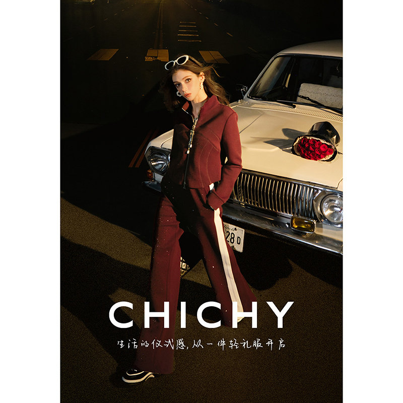 外套休闲裤 红色洋气修身 两件套 女25冬新款 CHICHY高级显瘦卫衣套装