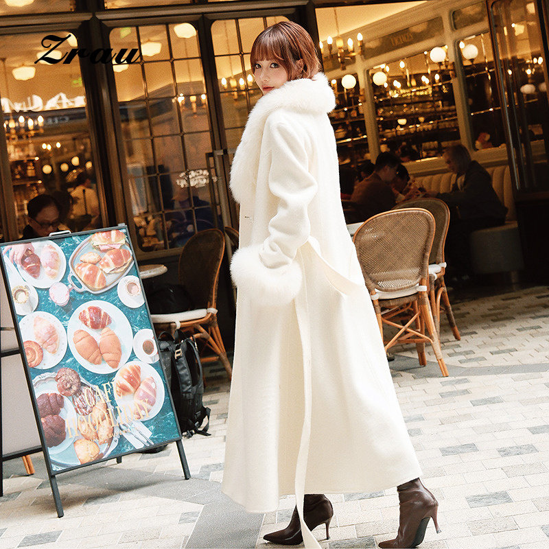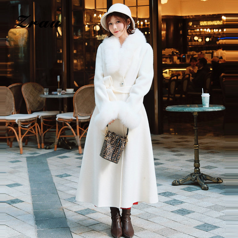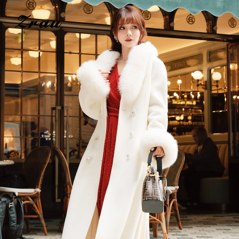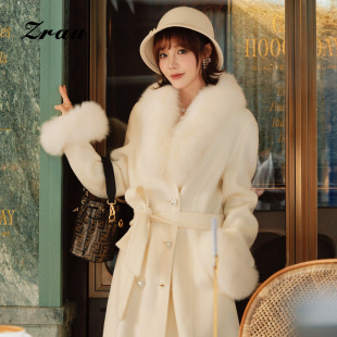 狐狸毛领商场博主同款 ZRAU 新款 2025冬季 毛呢外套 100%绵羊毛