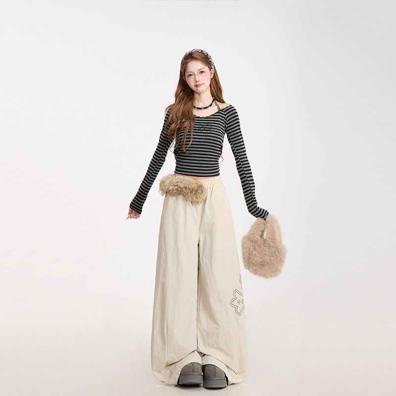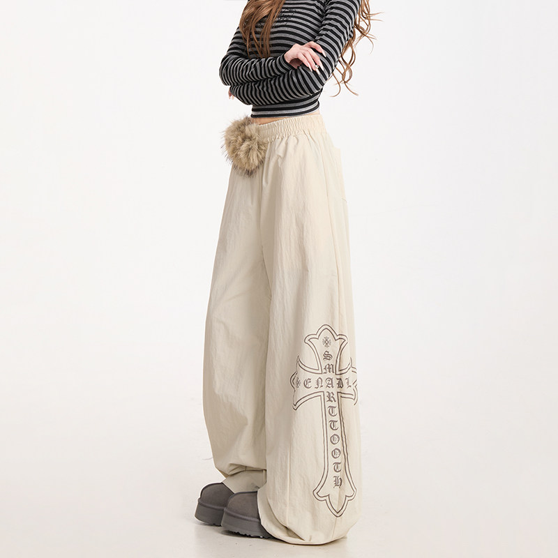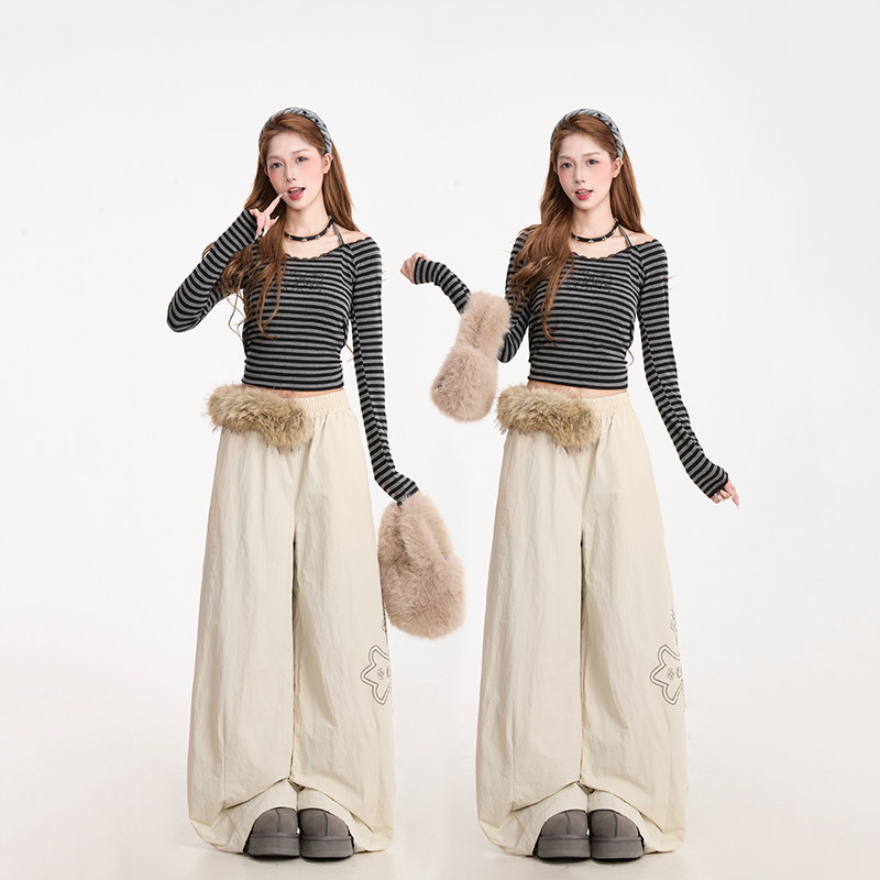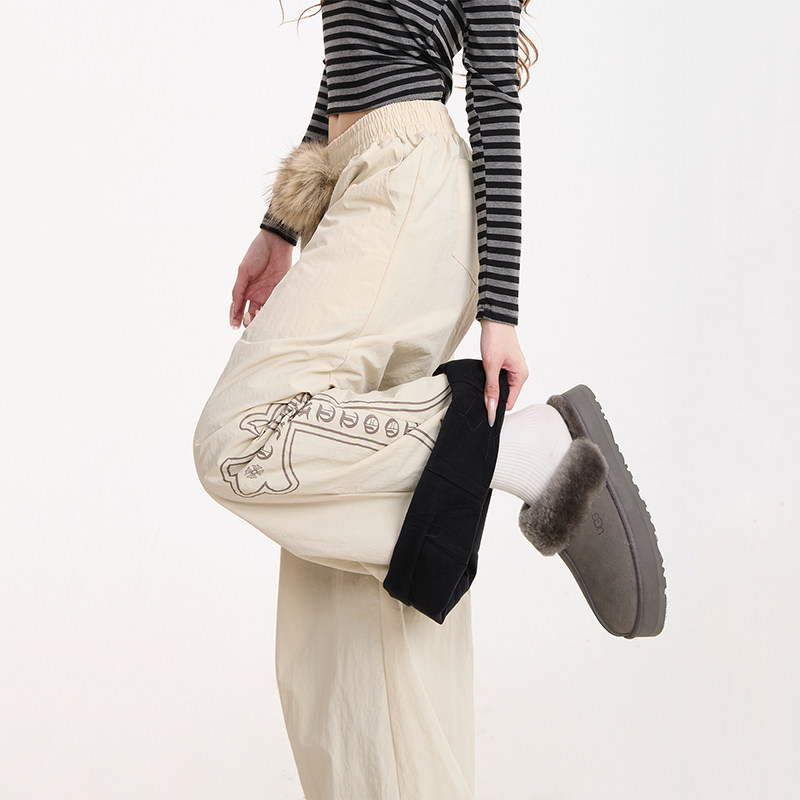 防风保暖阔腿棉裤 NERESUM美式 女秋冬加绒弯刀伞兵裤 裤 子 毛领工装