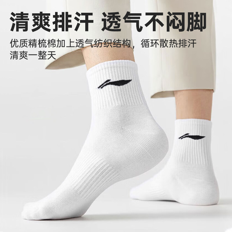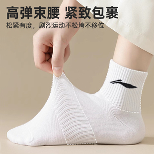 李宁袜子男青少年运动袜女秋冬跑步加厚纯棉抗菌防臭吸汗中筒短袜