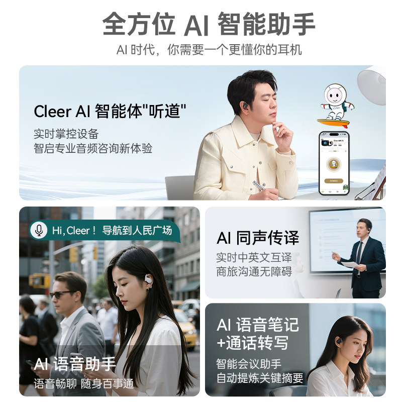 AI降噪 蓝牙耳机2025新款 Cleer 5代降噪版 不入耳杜比音效 ARC