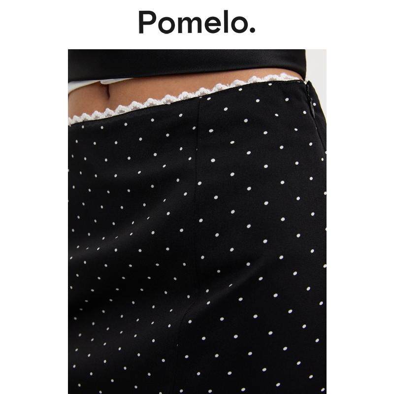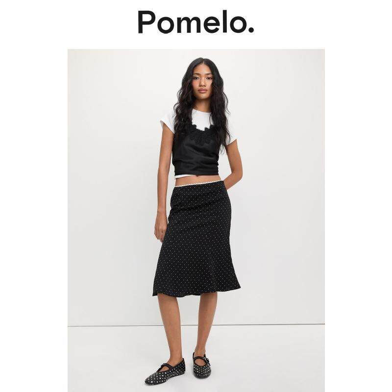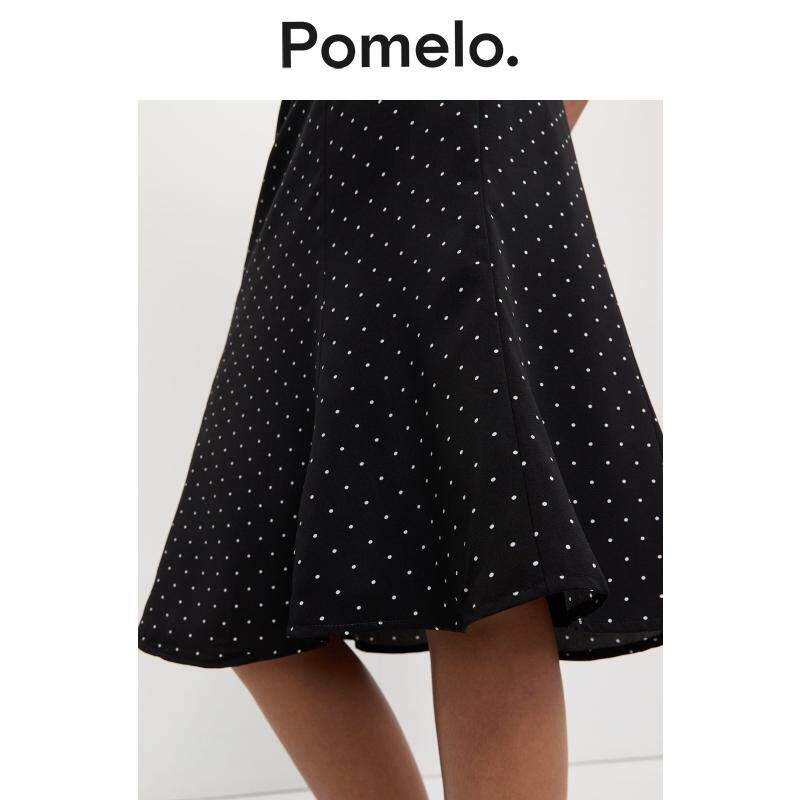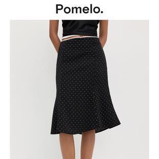 Pomelo 温柔风波点半身裙高腰显瘦鱼尾摆小个子通勤中长半身裙