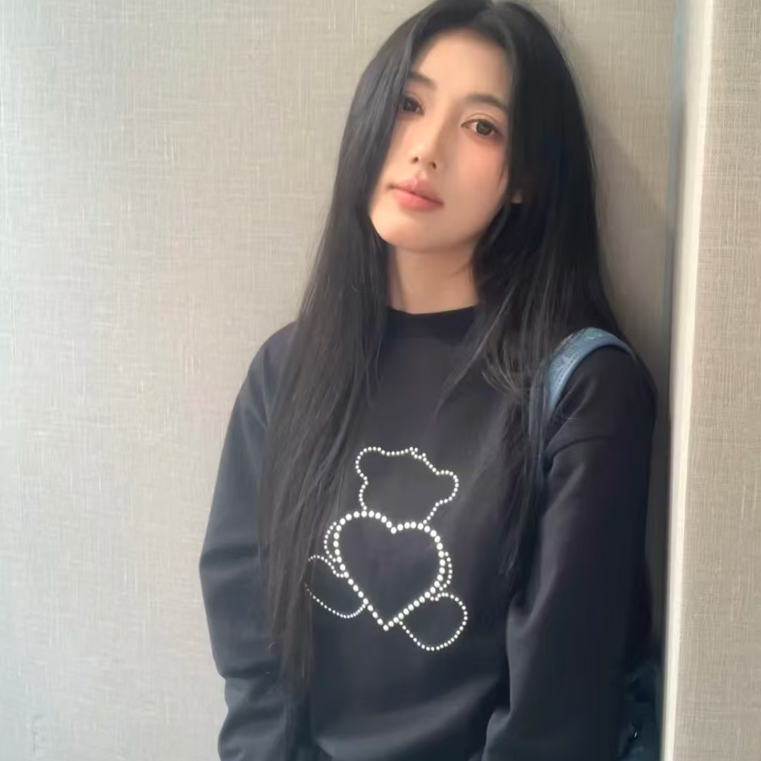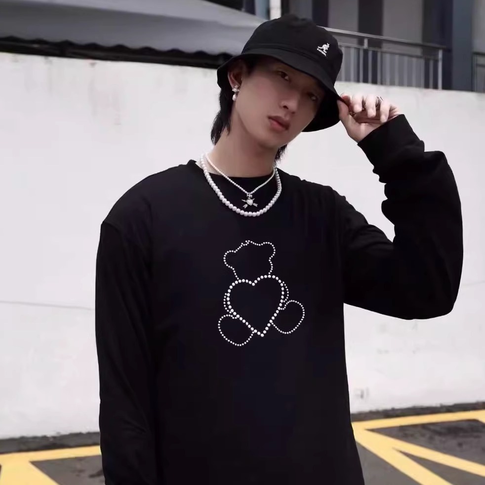 现货 长袖 WE11DONE 男女情侣同款 T恤 TRACK爱心小熊珍珠长袖
