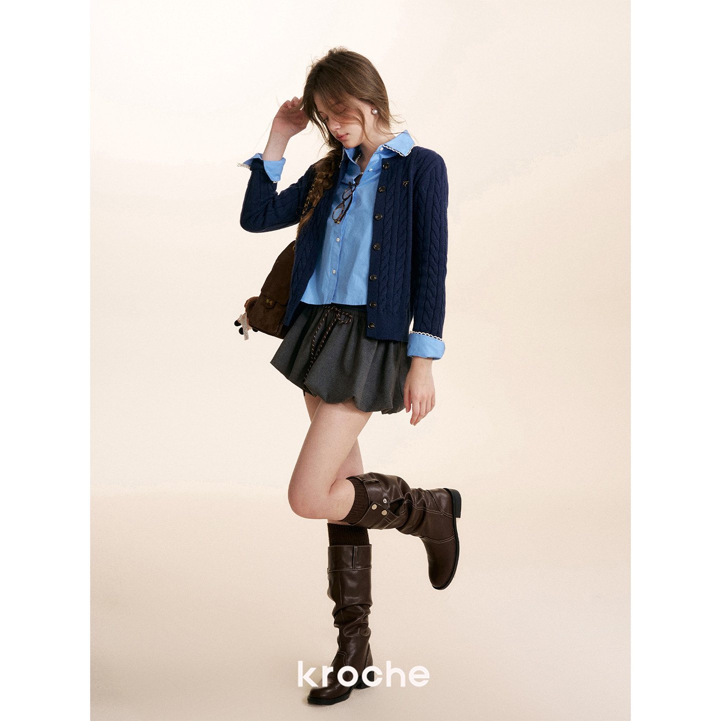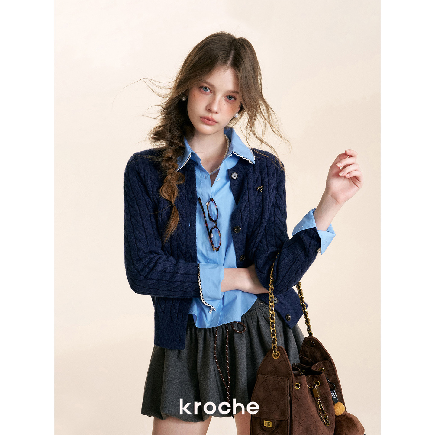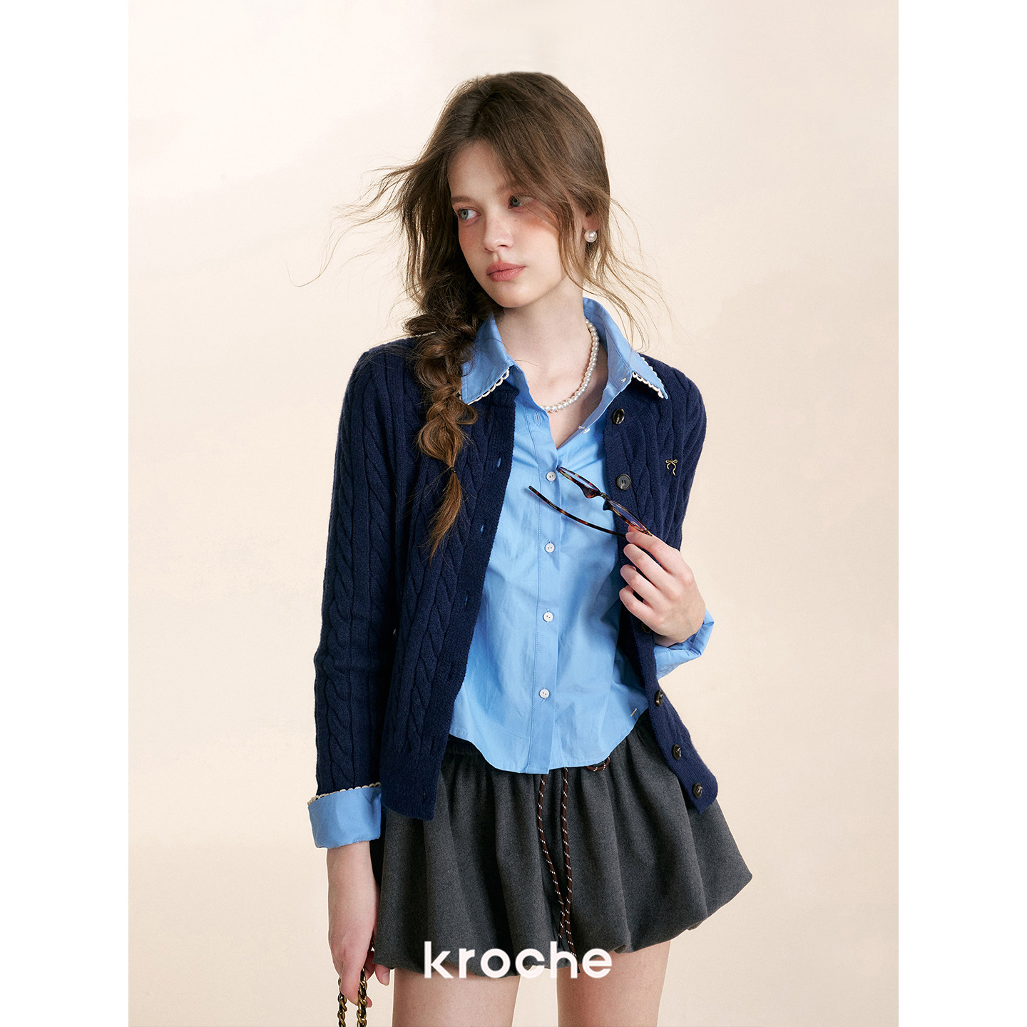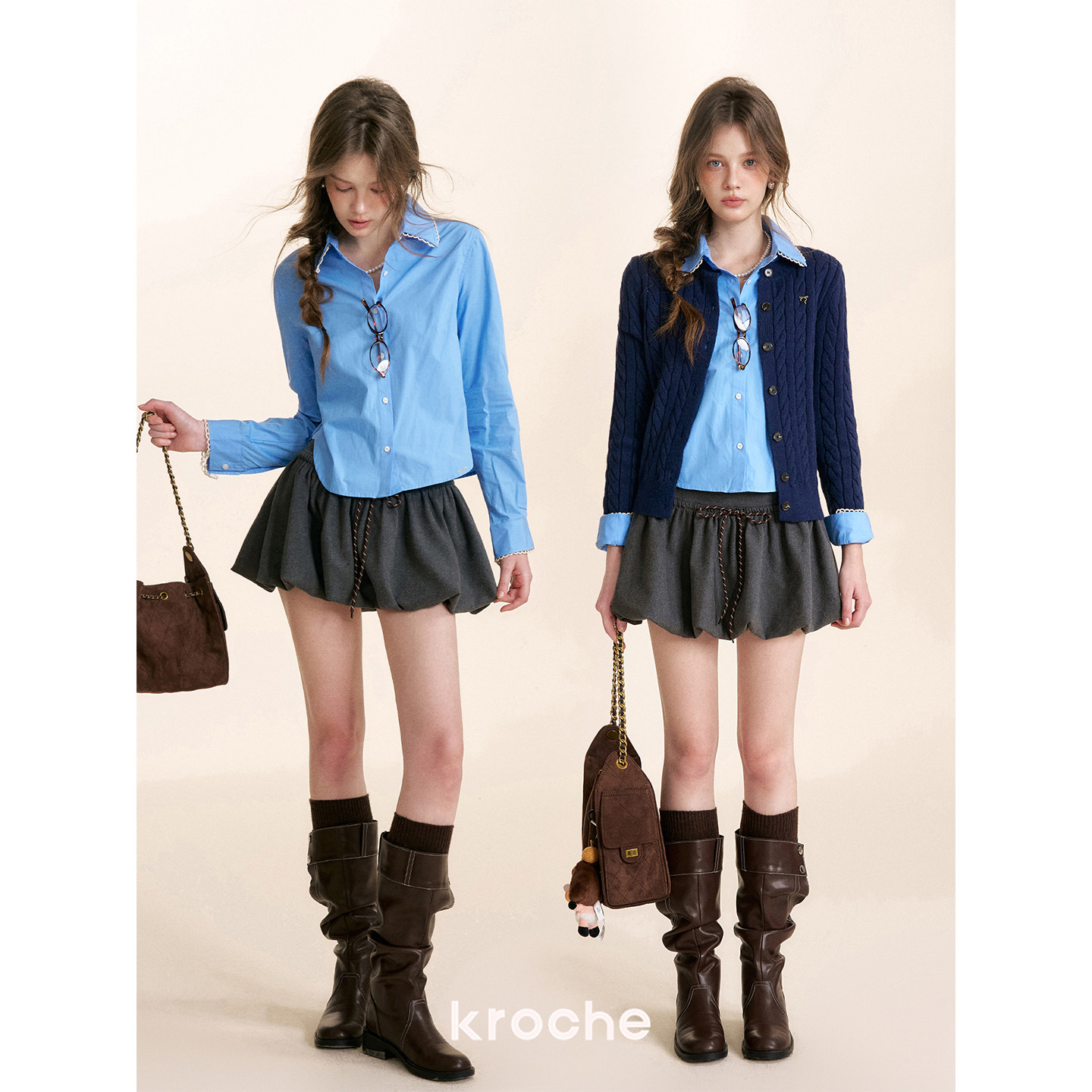 chic 花边拼接 全棉翻领长袖 Kroche 宽松衬衫 Geek 短款 25aw